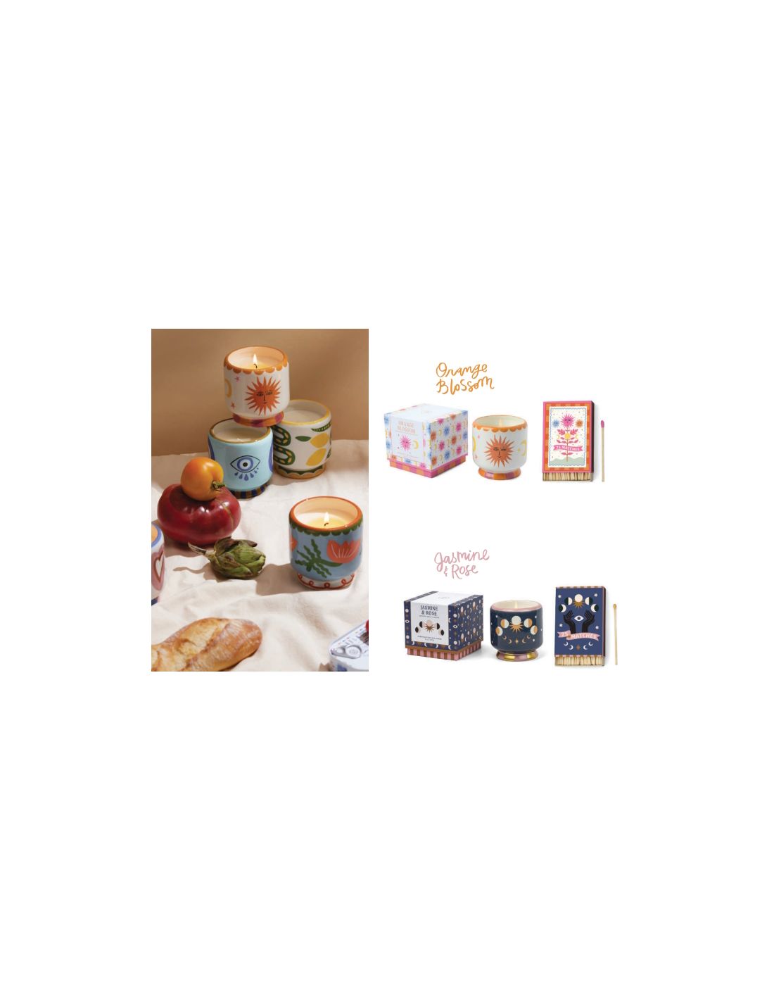 Jolie boite d'allumettes assortie à la collection de bougies parfumées Paddywax Adopo.