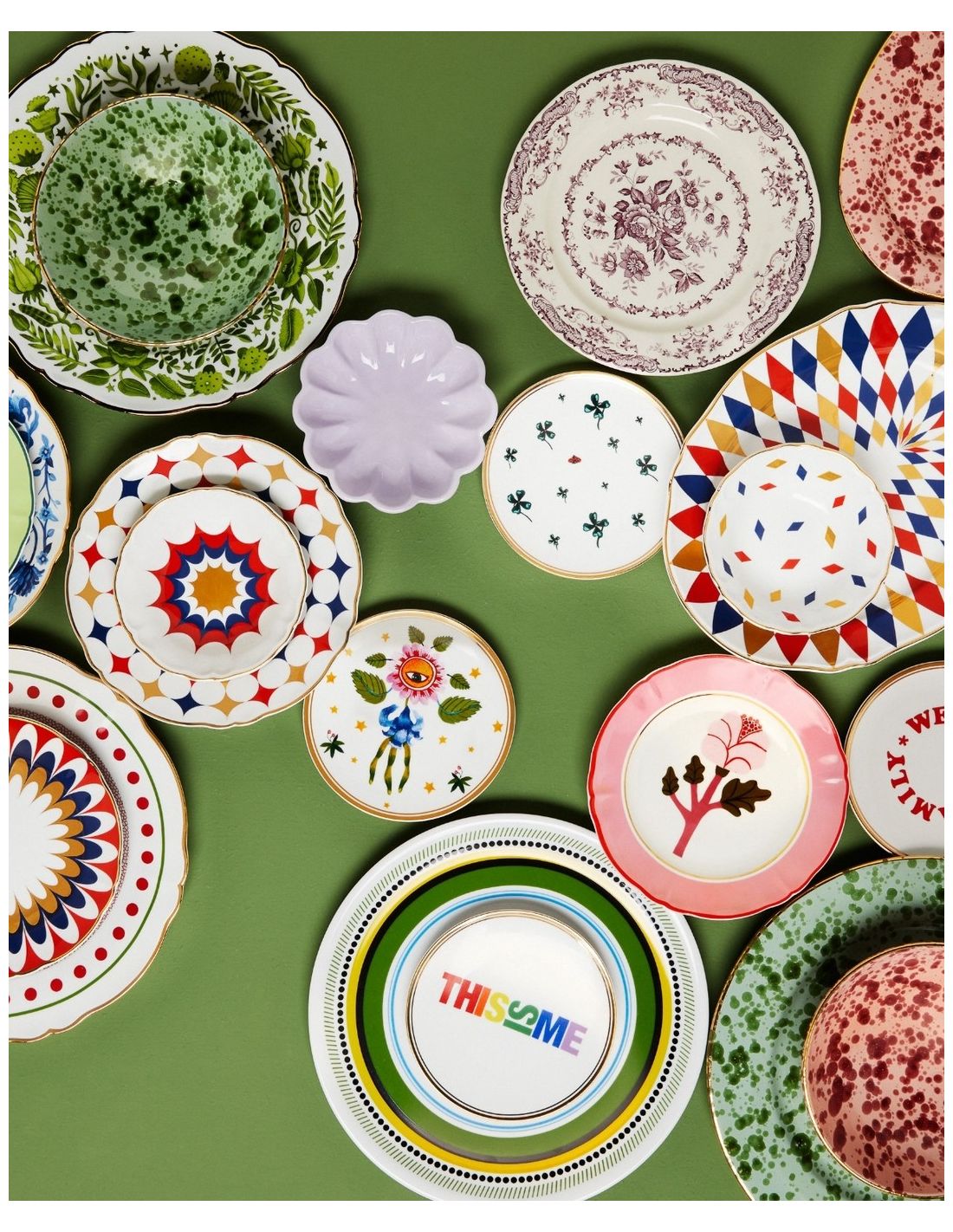 Des étoiles à multiples pointes, des tourniquets et des effets optiques alternant avec des graphismes plus doux, mais toujours saupoudrés de poussière d’étoiles, semblent dire "regardez-moi". Le truc est là et vous pouvez le voir, il n'est pas nécessaire d'utiliser une baguette magique, il suffit de combiner les plats pour transformer la table en quelque chose de différent et d'inattendu à chaque fois.
