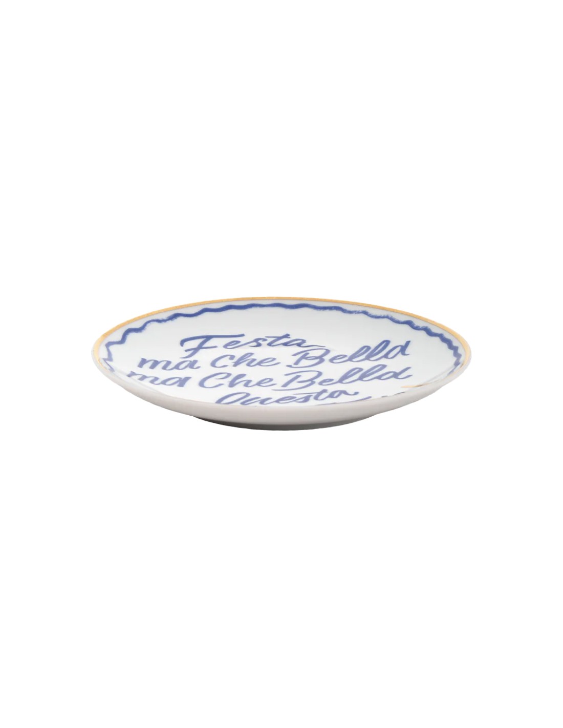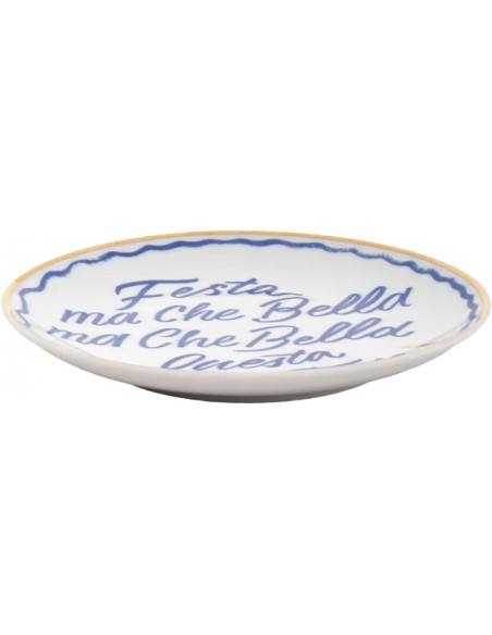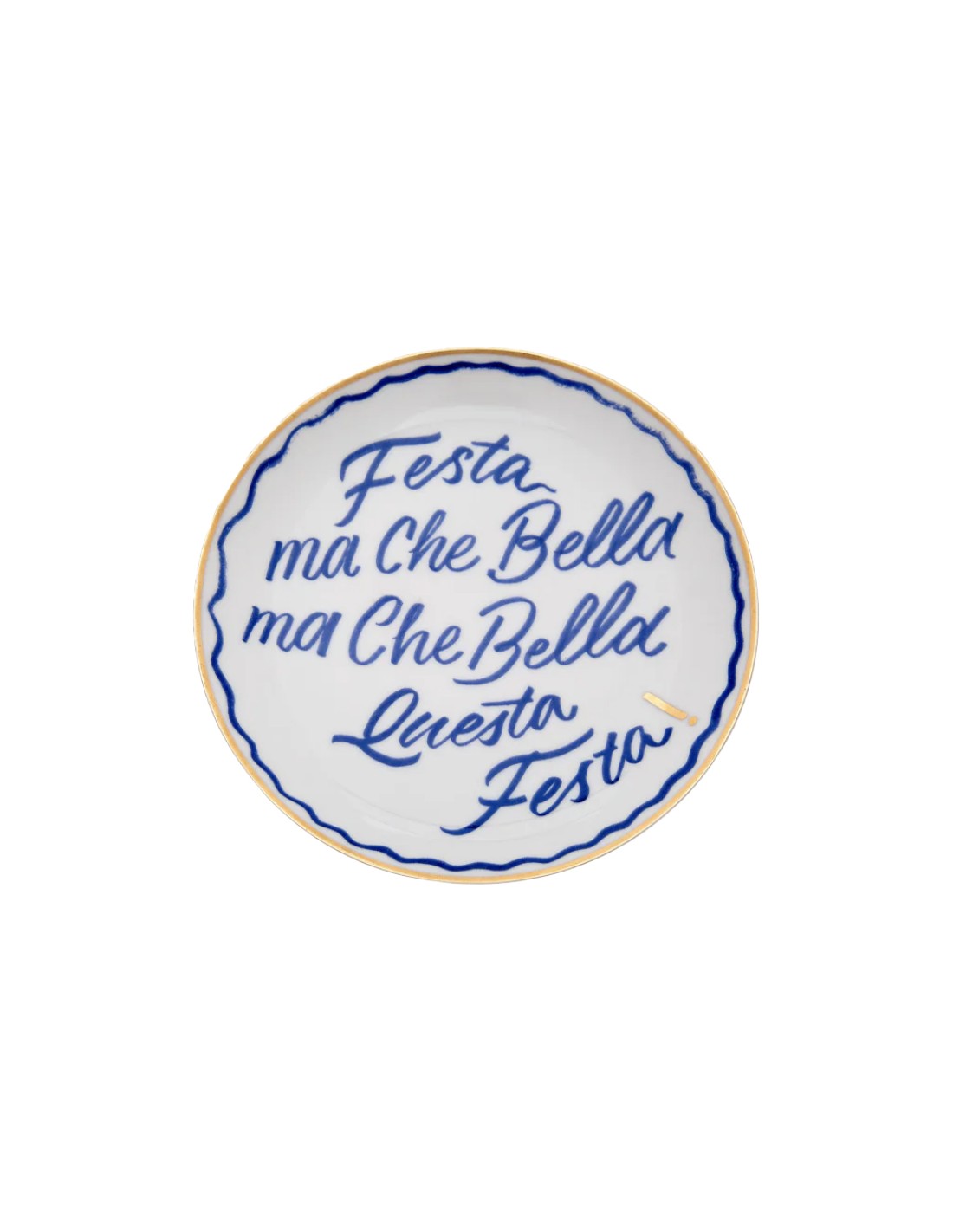 Assiette Festa - 16,5cm : Apportez une touche d'originalité à votre table avec le plat "Festa ma che bella". Avec son design affirmé et son message plein de caractère, il est parfait pour servir vos créations culinaires avec style. Un clin d'œil à ceux qui préfèrent l'authenticité à la prétention.