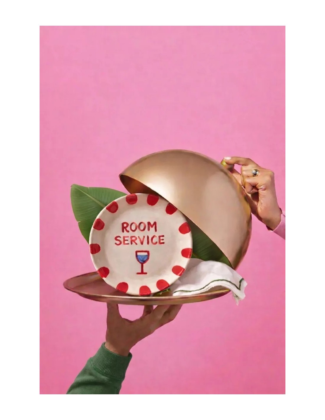 Assiette 20 cm - Room Service : 🌞 Cette assiette de 20 cm de diamètre, ornée d’un verre à pied et de l'inscription "Room Service" au centre, apporte une ambiance cocooning et fun à votre table ou à votre intérieur.
