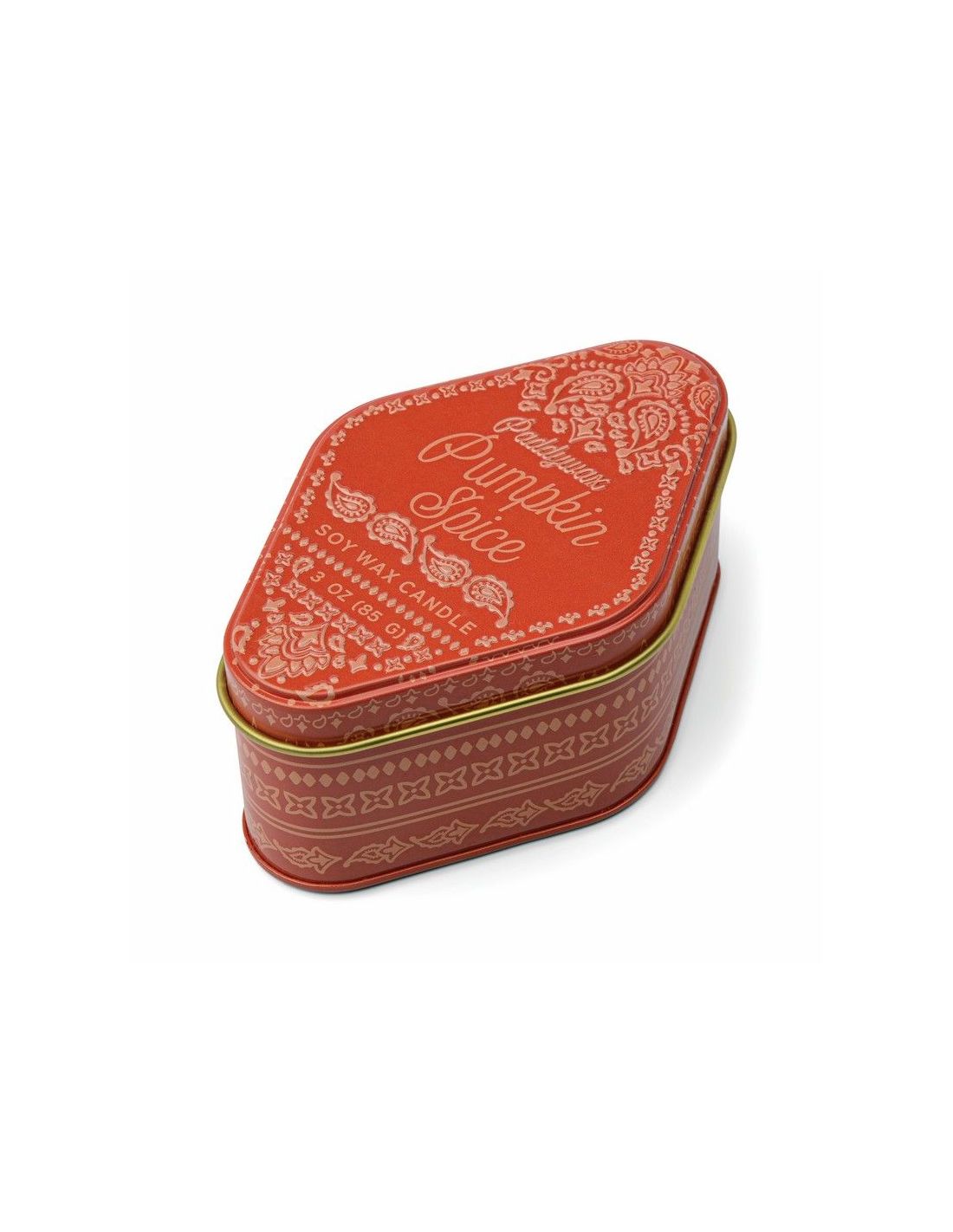 Bougie Boite Métal - Paddywax - Spiced Pumpkin : Une boite en métal joliment décorée contenant une bougie parfumée en souvenir des grands parcs nationaux Américains