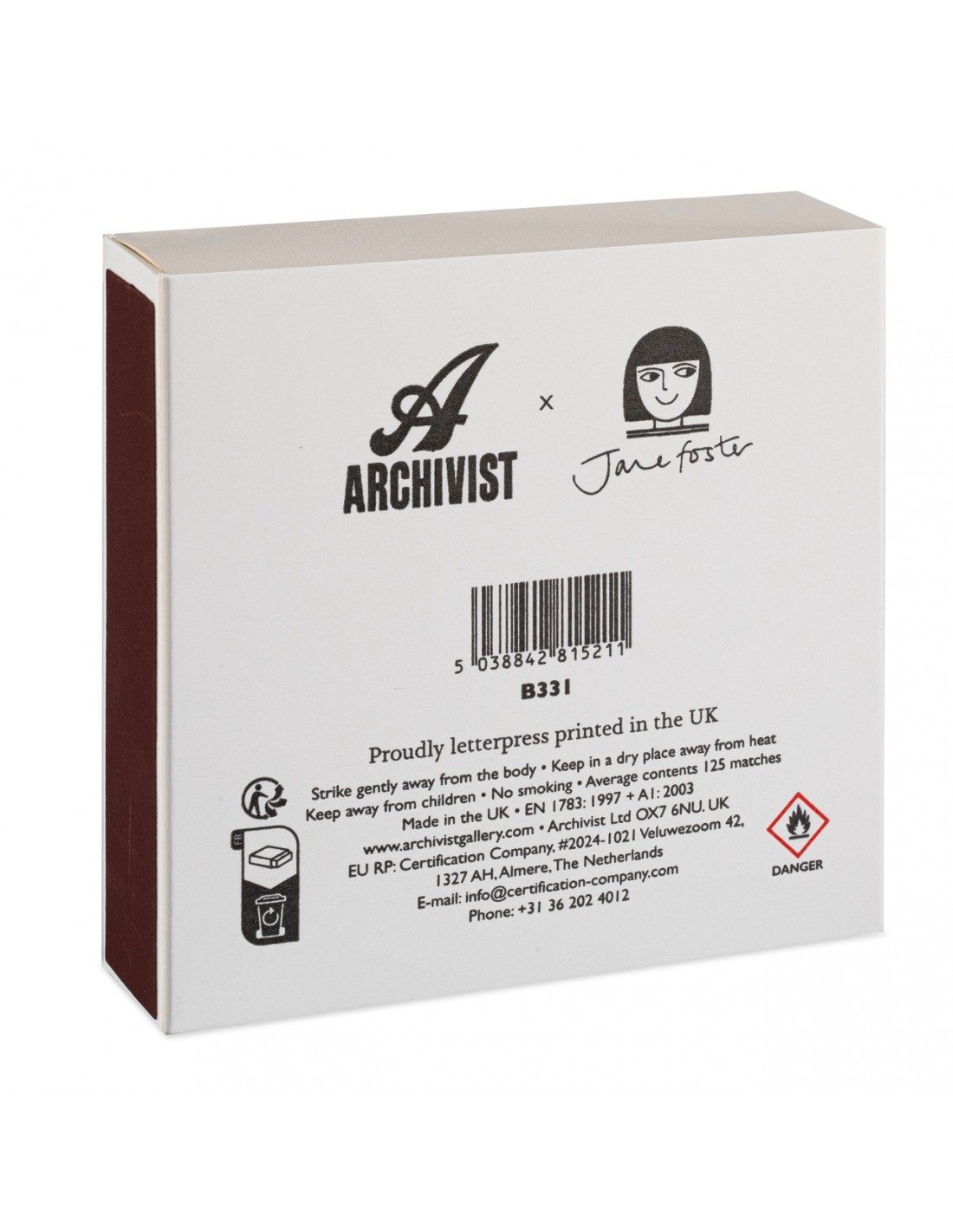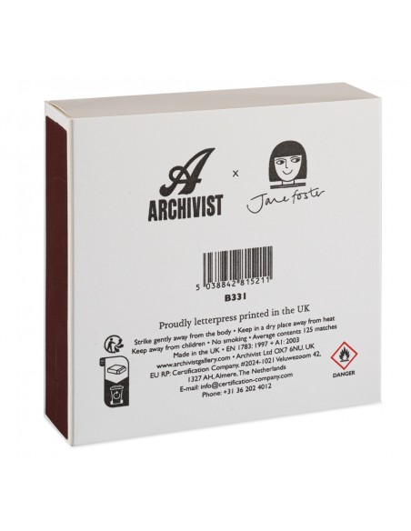 Les boites d'allumettes Archivist sont conçues, imprimés et assemblées au Royaume Uni. Chaque motif est un dessin original réalisé par la marque.