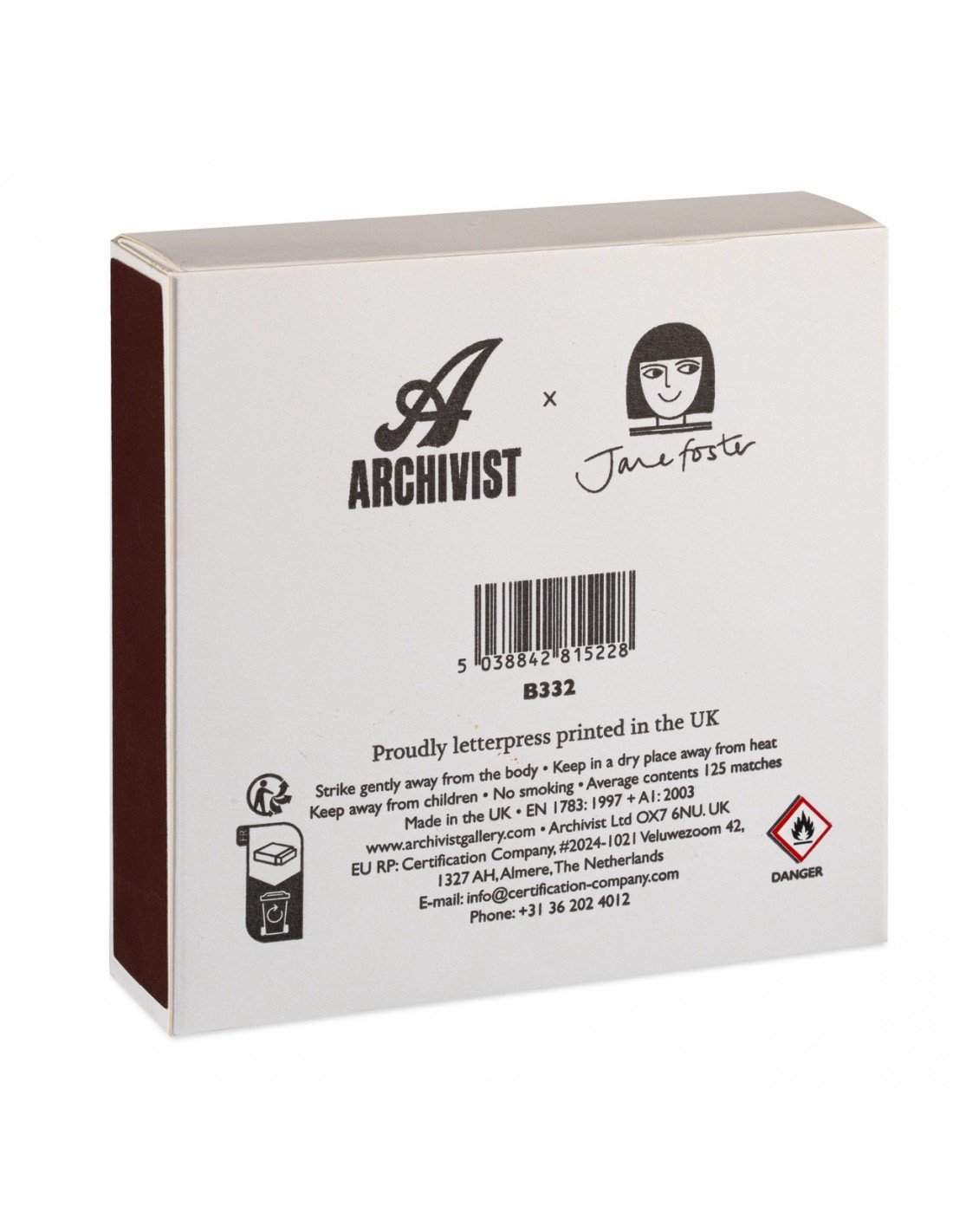 Les boites d'allumettes Archivist sont conçues, imprimés et assemblées au Royaume Uni. Chaque motif est un dessin original réalisé par la marque.