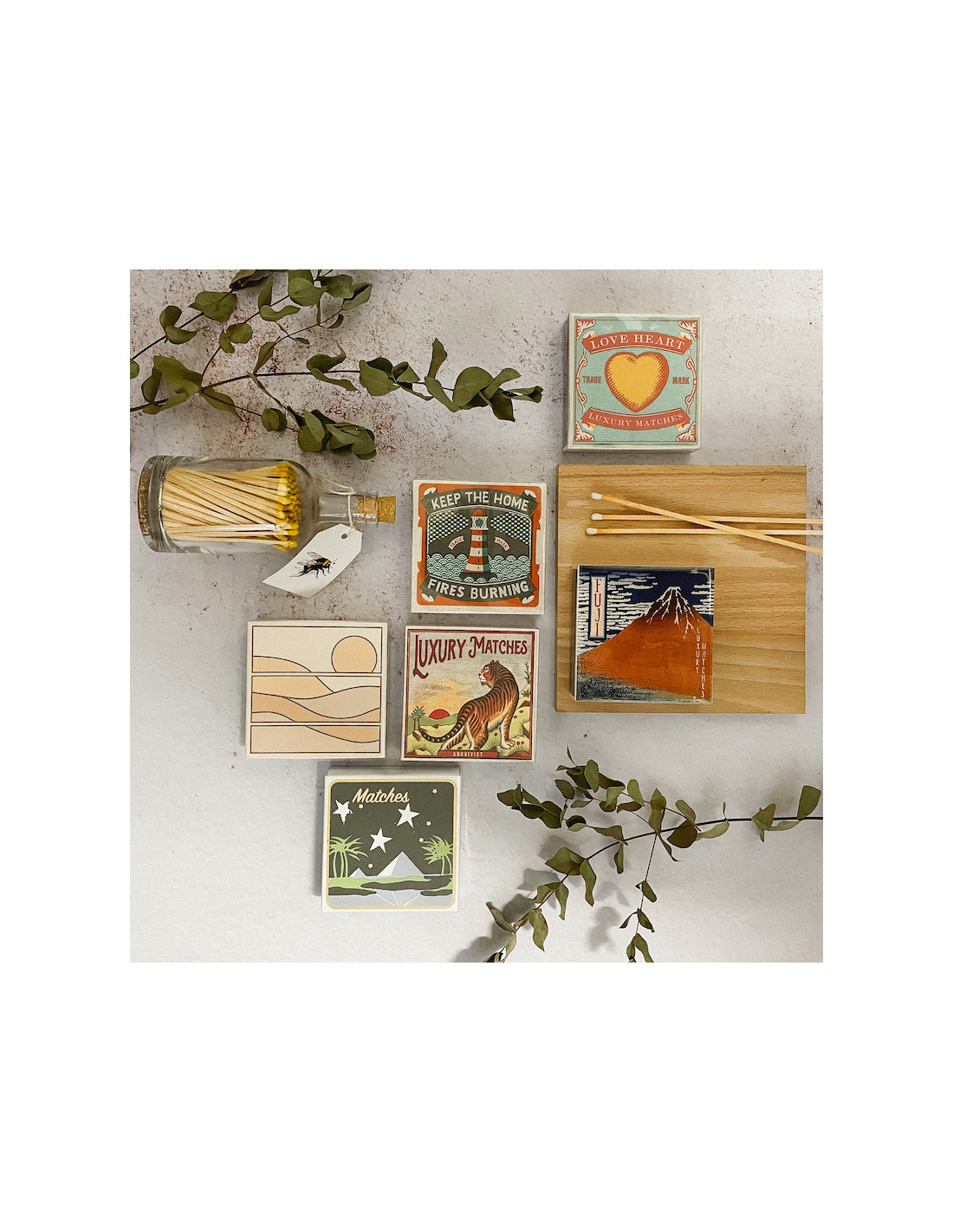 Les boites d'allumettes Archivist sont conçues, imprimés et assemblées au Royaume Uni. Chaque motif est un dessin original réalisé par la marque.