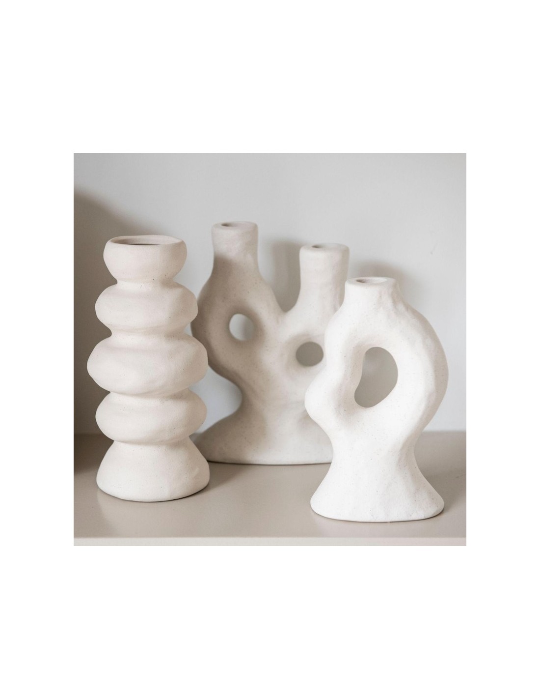 Chandelier Oria - Andrea House : Apportez une touche d'élégance et de modernité à votre intérieur avec ce chandelier sculptural en céramique. Son design organique et épuré sublime la lumière de vos bougies et s’intègre parfaitement à une décoration minimaliste, bohème ou contemporaine. Idéal pour créer une ambiance chaleureuse et sophistiquée dans votre salon, salle à manger ou chambre.