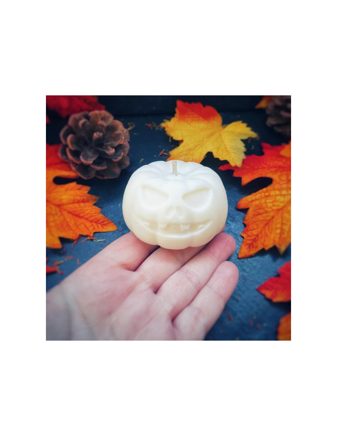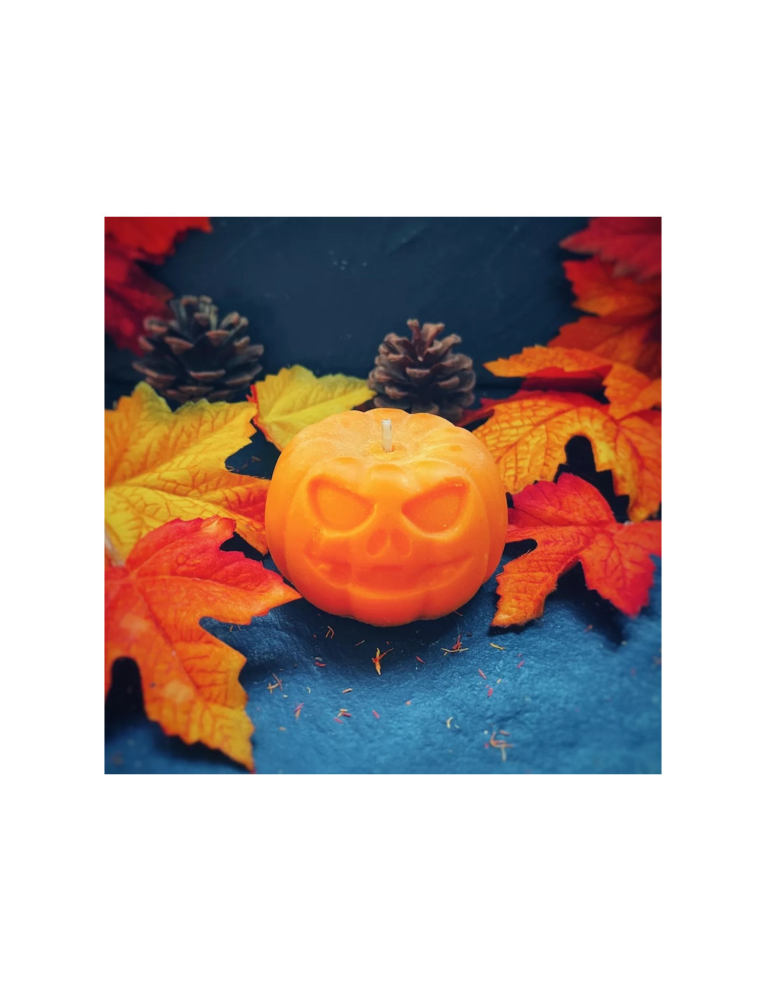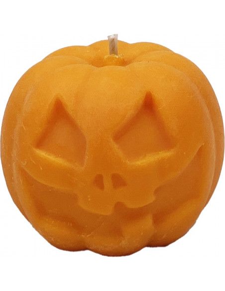 Bougie Citrouille parfumée - Orange : Cette bougie parfumée en forme de citrouille de couleur orange sera parfaite pour votre décoration d'Halloween. Parfums cèdre et pin.