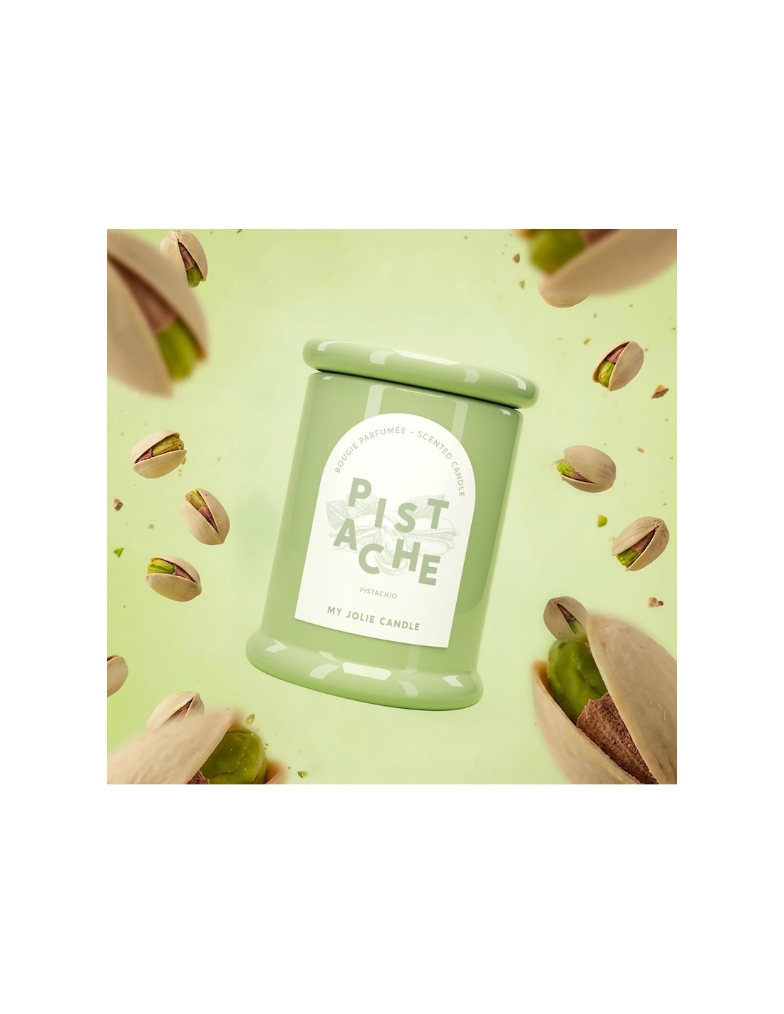 Bougie Trendy - Pistache - My Jolie Candle : Subtile et raffinée, cette bougie parfumée associe la fraîcheur des notes vertes à la gourmandise délicate de la pistache, relevée par la profondeur boisée du cèdre.