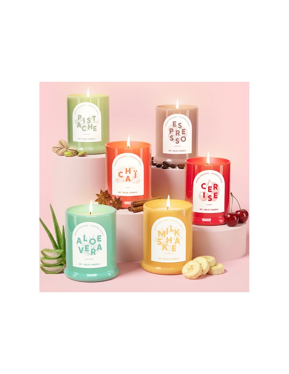 Les bougies My Jolie Candle sont fabriquées à base de cire 100% végétale de soja, de mangue et de coco. Les parfums sont élaborés à Grasse et les mèches en coton pur (garanties sans plomb et sans métaux) sont tressés à la main. Les bougies My Jolie Candle sont coulées dans des contenants en verre recyclé.