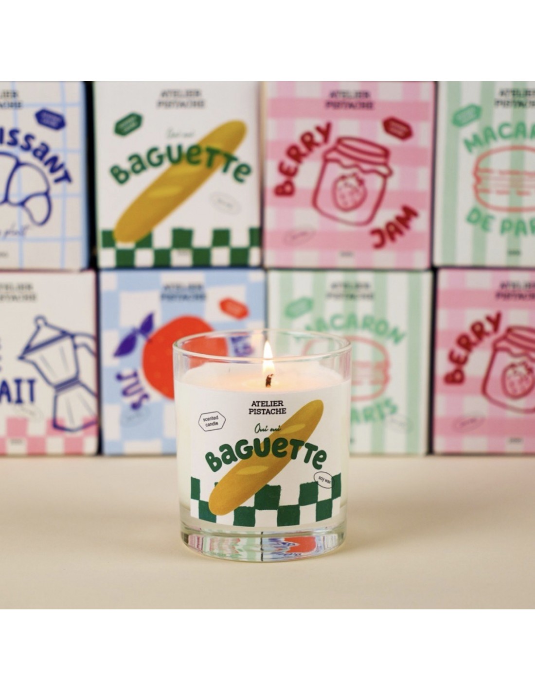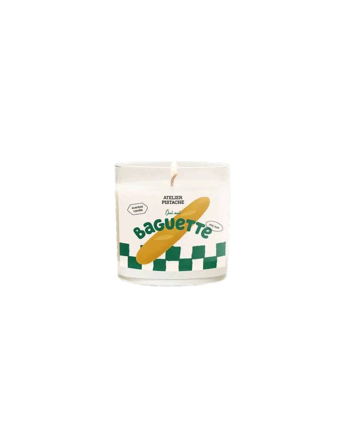 Bougie parfumée Baguette - Atelier Pistache : Une bougie parfumée chaude et croustillante, comme une baguette sortant du four!