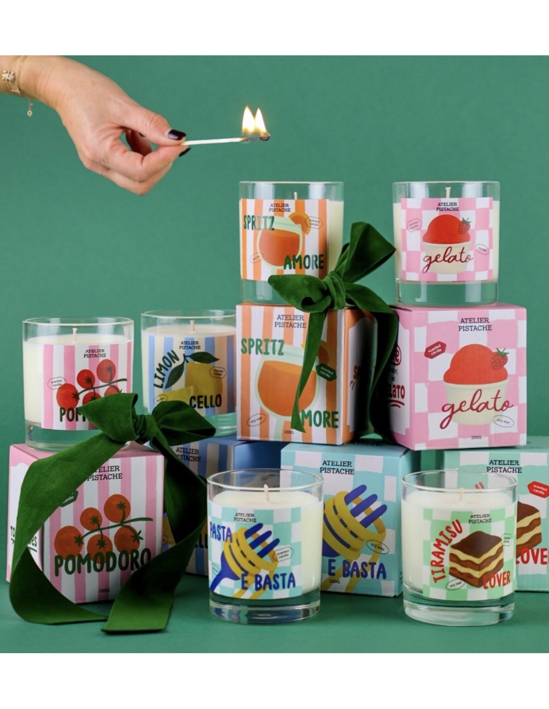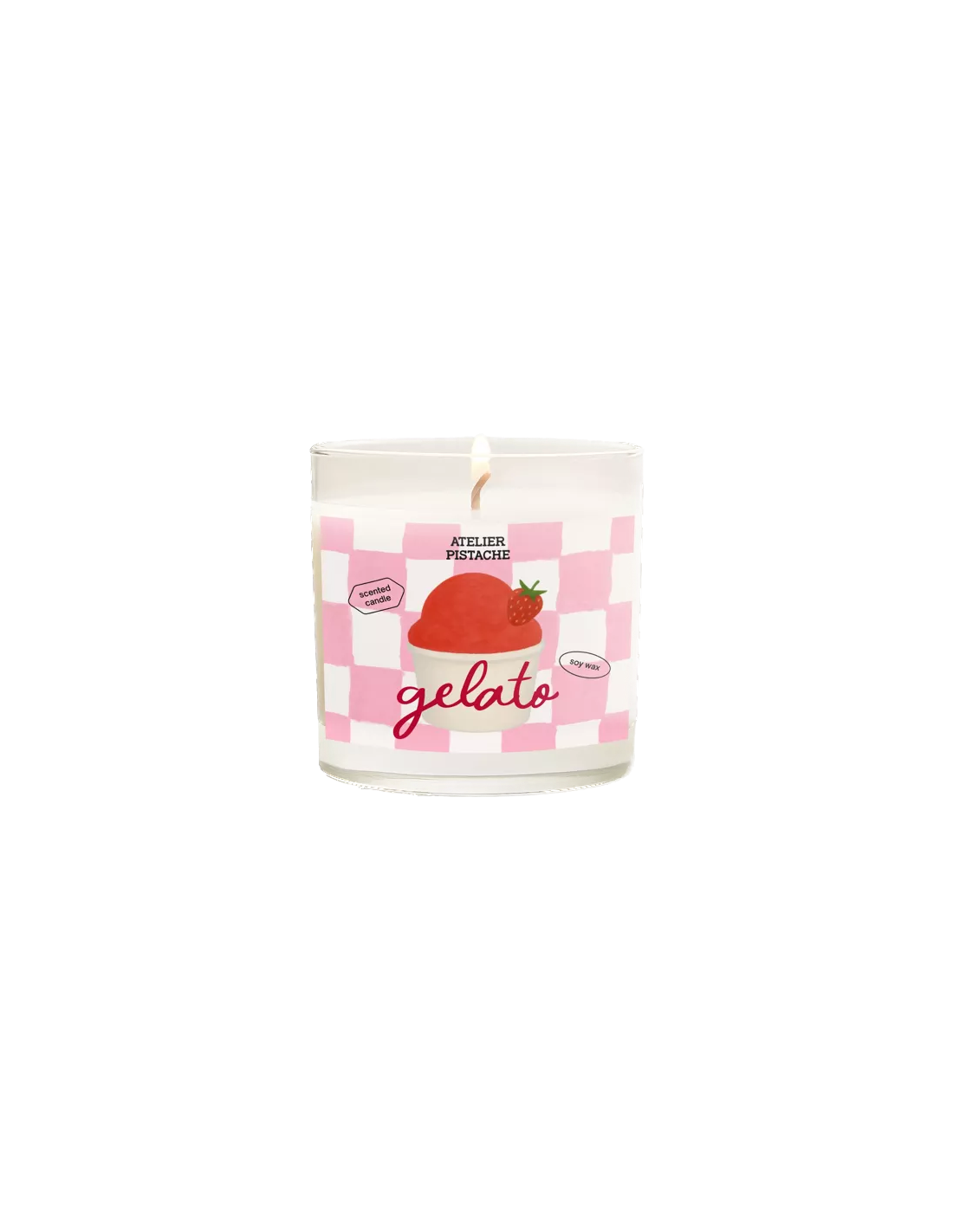 Bougie parfumée Atelier Pistache - Fragola Gelato : Une fragrance gourmande et crémeuse, comme une glace à l'italienne parfumée à la fraise.