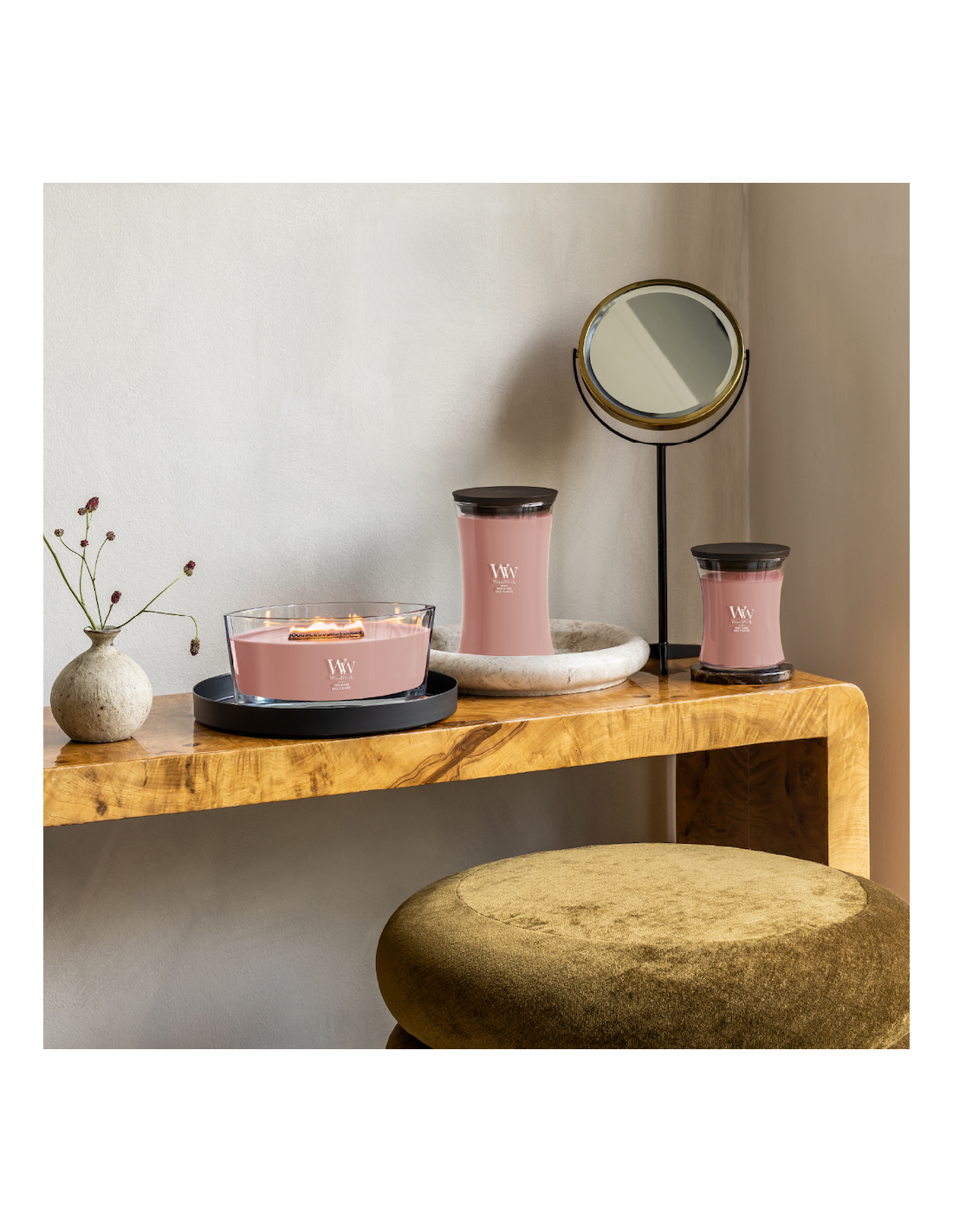 Bougie Rose Blush - Ellipse : Des notes subtiles de cassis et de bois de santal doux dans cette bougie parfumée qui s'inspire des roseraies anglaises.