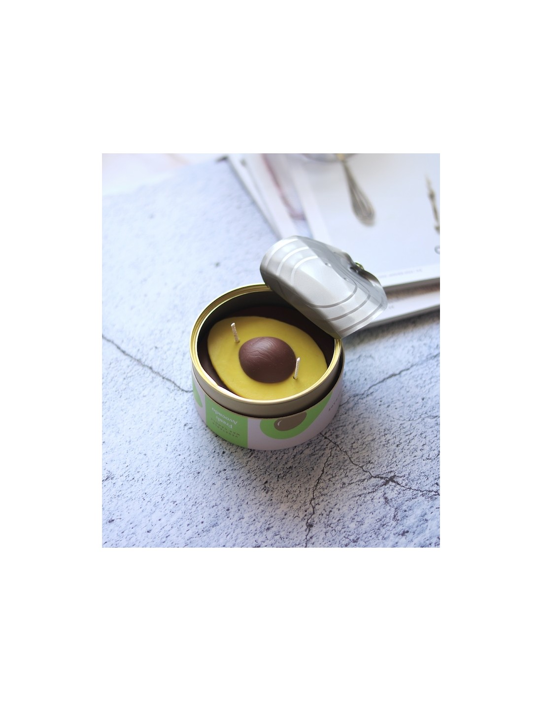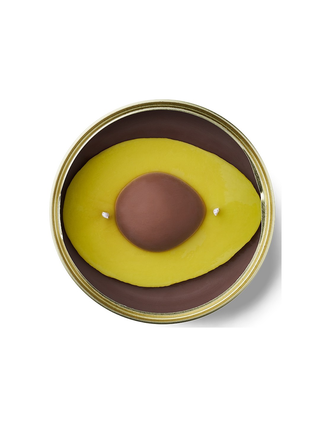 Bougie parfumée CandleCan - Avocat : Bougie parfumée effet trompe-l’œil imitant un avocat coupé, présentée dans une boîte façon conserve. Une création originale et contemporaine qui mêle illusion visuelle et parfum frais et végétal.
