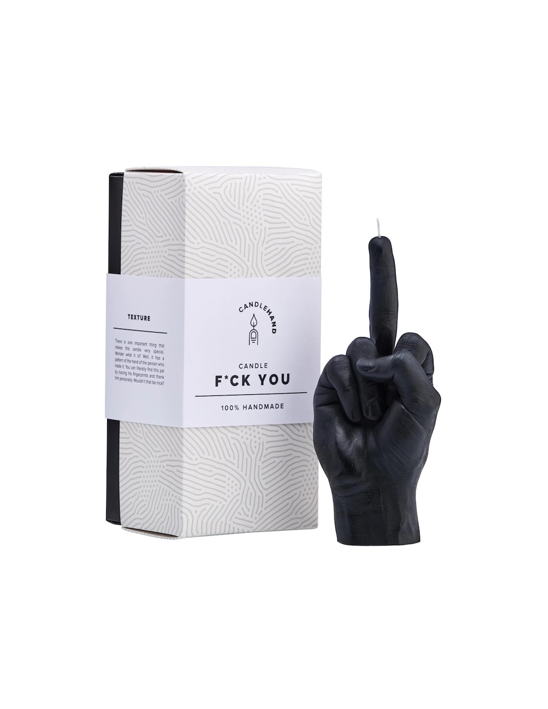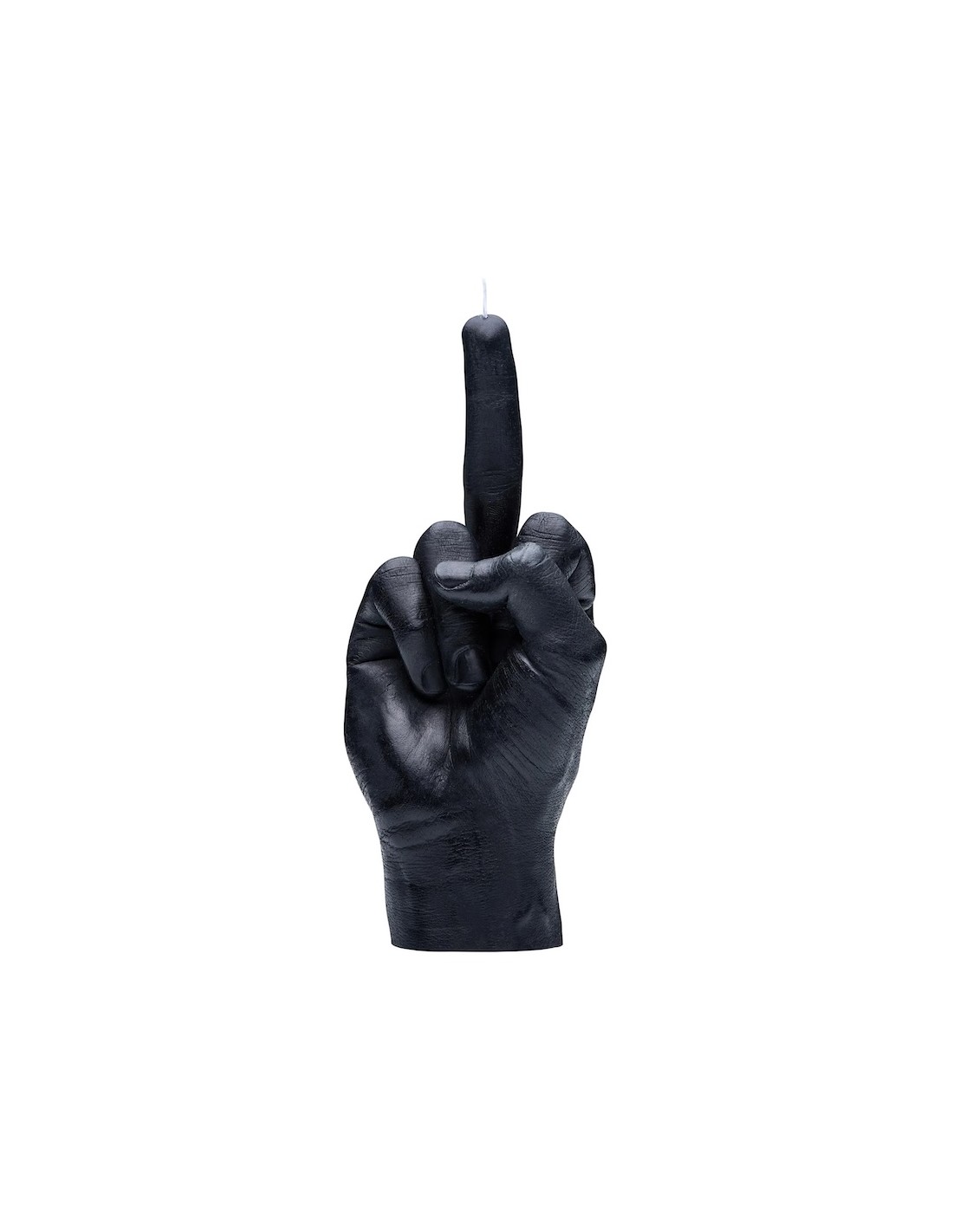 Bougie main « Fcuk you » - Noir : Bougie non parfumée en forme de main faisant un doigt d’honneur. Une pièce sculpturale audacieuse, idéale pour affirmer son humeur, son humour ou son état d’esprit sans dire un mot.