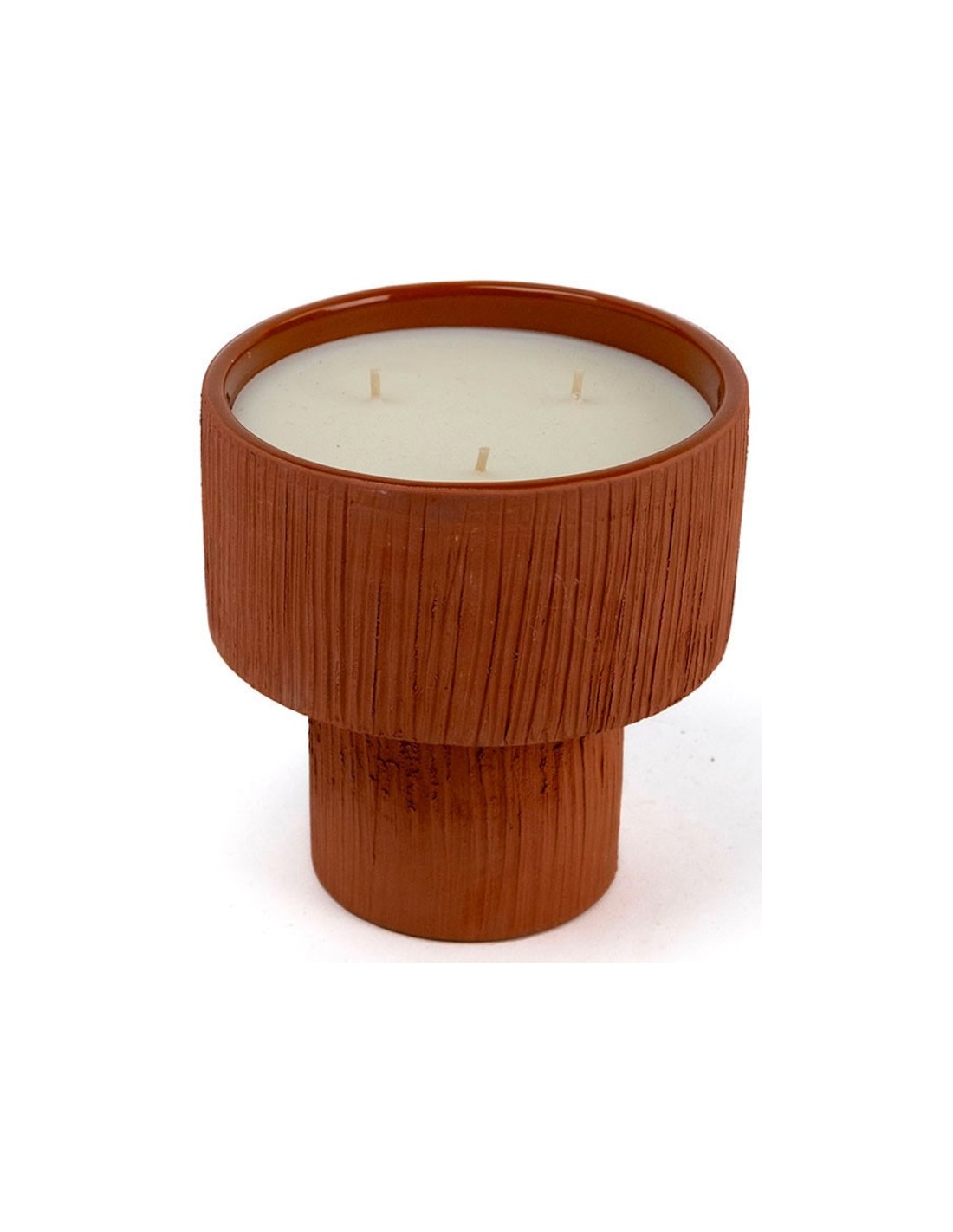 Bougie Coupe Fruit Terracotta M - Ambre : Découvrez cette élégante bougie en terre cuite striée en forme de coupe à fruits, sublimée par sa couleur terracotta chaleureuse. Parfumée à l'ambre, elle diffuse une fragrance enveloppante et raffinée, idéale pour créer une ambiance apaisante. À la fois décorative et fonctionnelle, cette bougie artisanale apporte une touche d’authenticité et d’élégance à votre intérieur.
