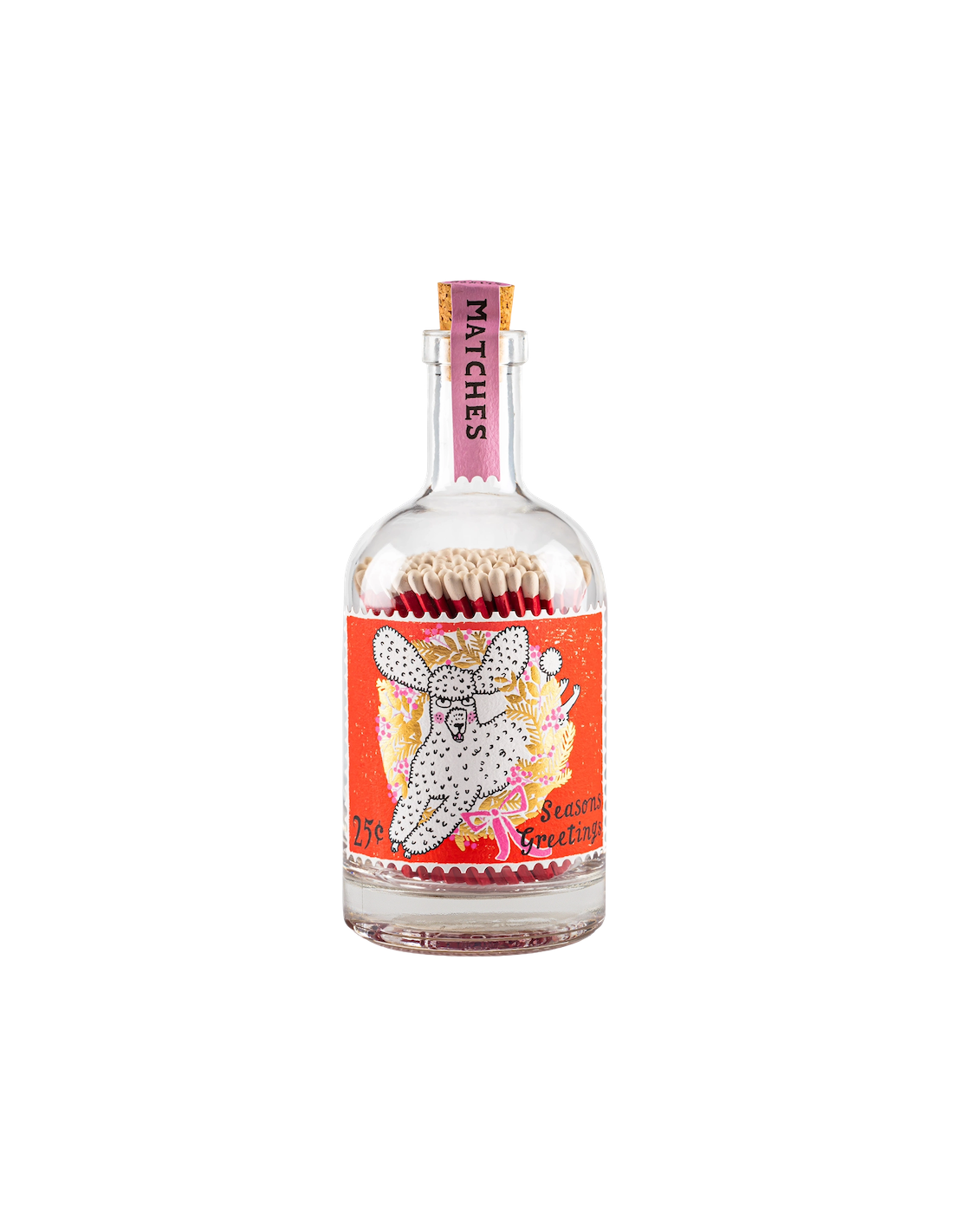 Bouteille d'allumettes - Festive Poodle Stamp - The Archivist : Illuminez vos fêtes avec la bouteille d’allumettes "Season’s Greetings", un objet pratique et plein de charme hivernal.
