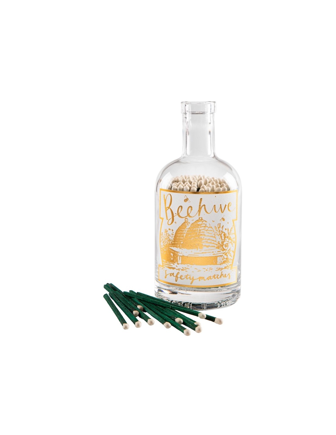 🐝 Cette bouteille d’allumettes en verre transparent est sublimée par une illustration Beehive aux teintes dorées, évoquant la ruche, la nature et le savoir-faire artisanal. Un design poétique qui apporte une touche authentique et apaisante à votre intérieur.