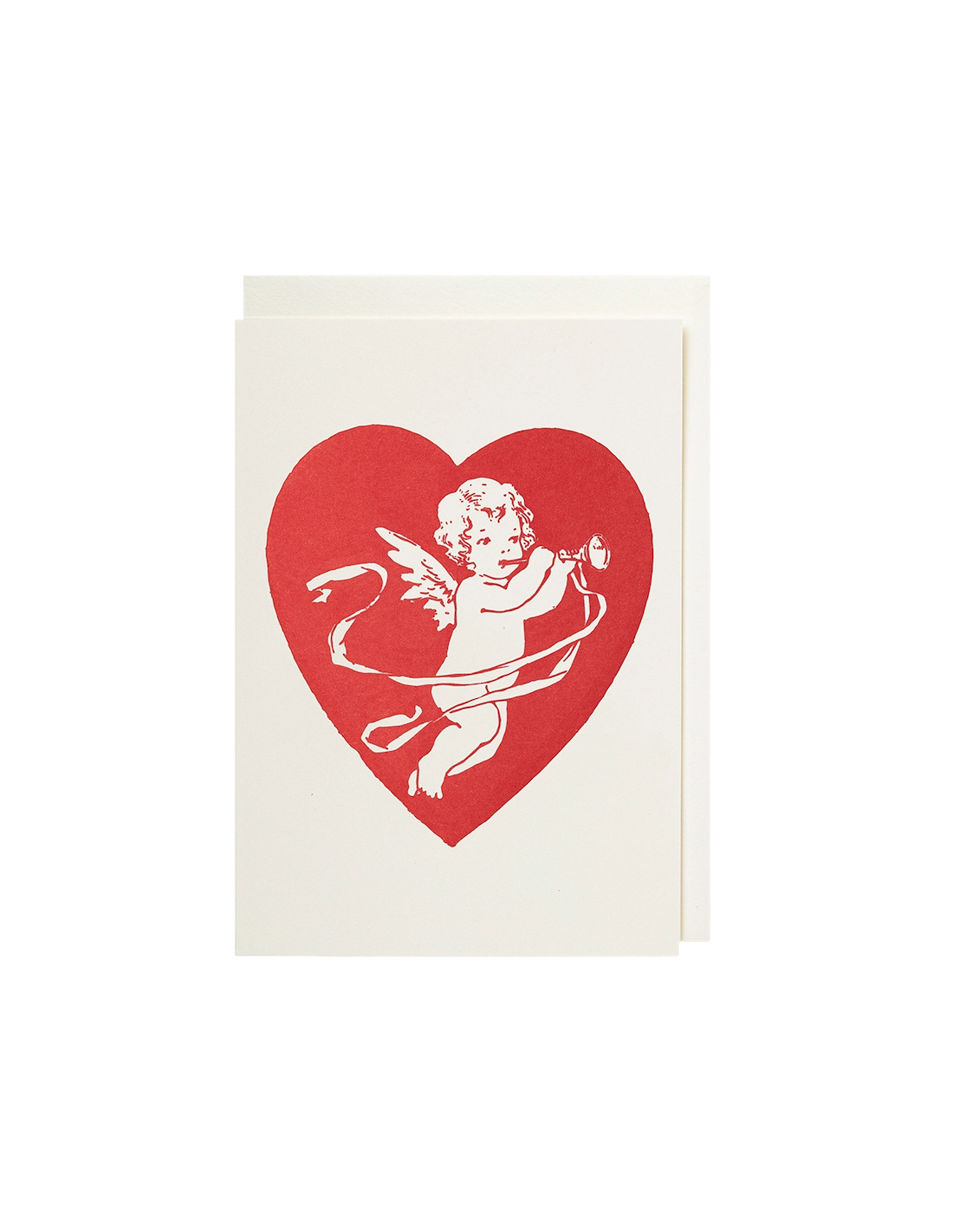 Carte Chérubin - The Archivist : Un design intemporel et plein de tendresse : cette jolie carte ornée d’un cœur rouge et d’un petit Cupidon ailé est parfaite pour accompagner vos cadeaux ou déclarer votre flamme.