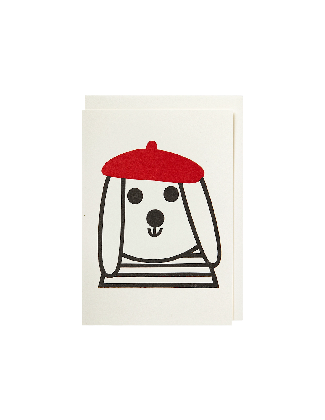 Carte Dog with Beret – Archivist Gallery : Avec son béret rouge et sa marinière, ce chien au look typiquement français apporte une touche d’humour et de charme à vos messages. Un design graphique et minimaliste qui séduira petits et grands.