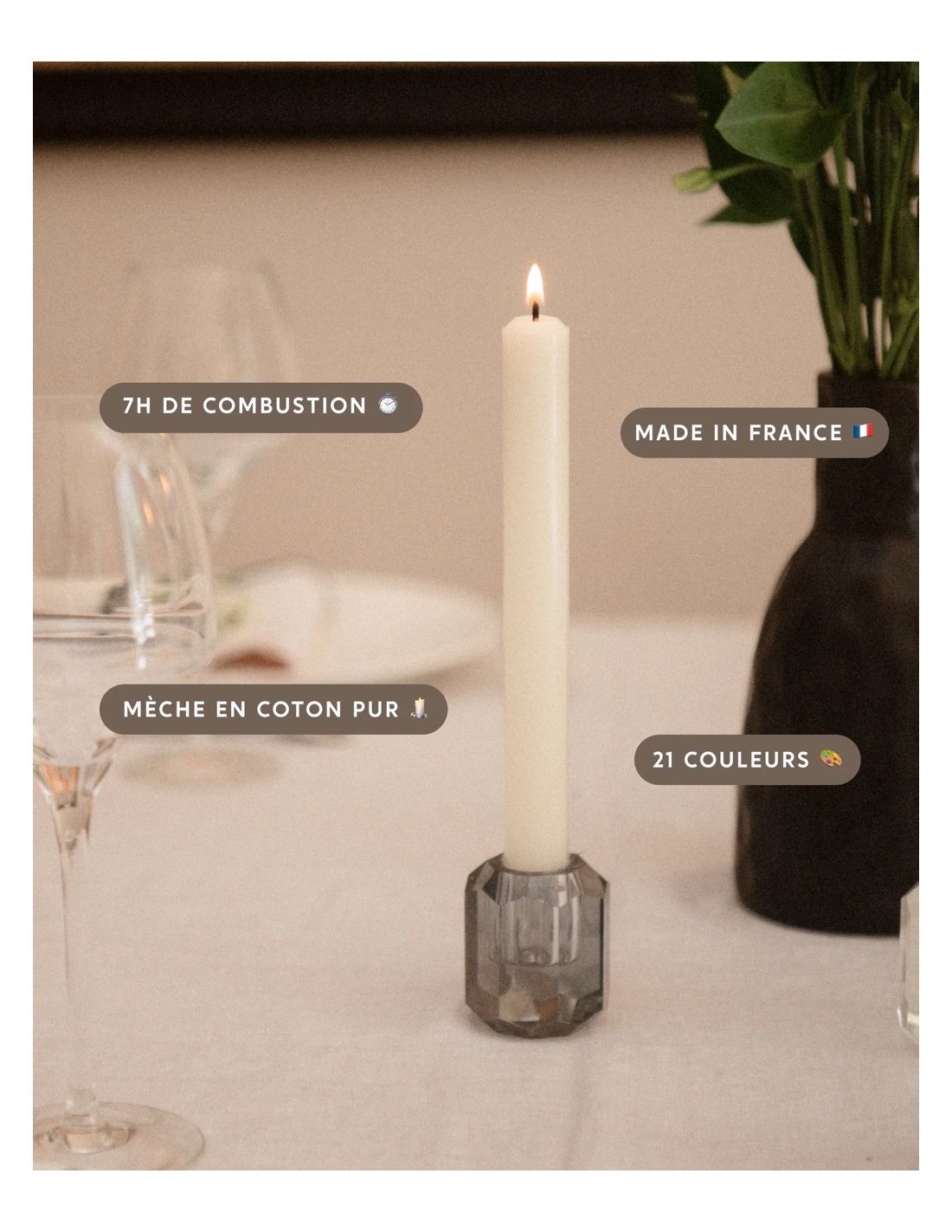 À utiliser avec un bougeoir ou un chandelier - Non parfumé - 7 heures de combustion - 20 x 2,2 cm - Vendu à l'unité