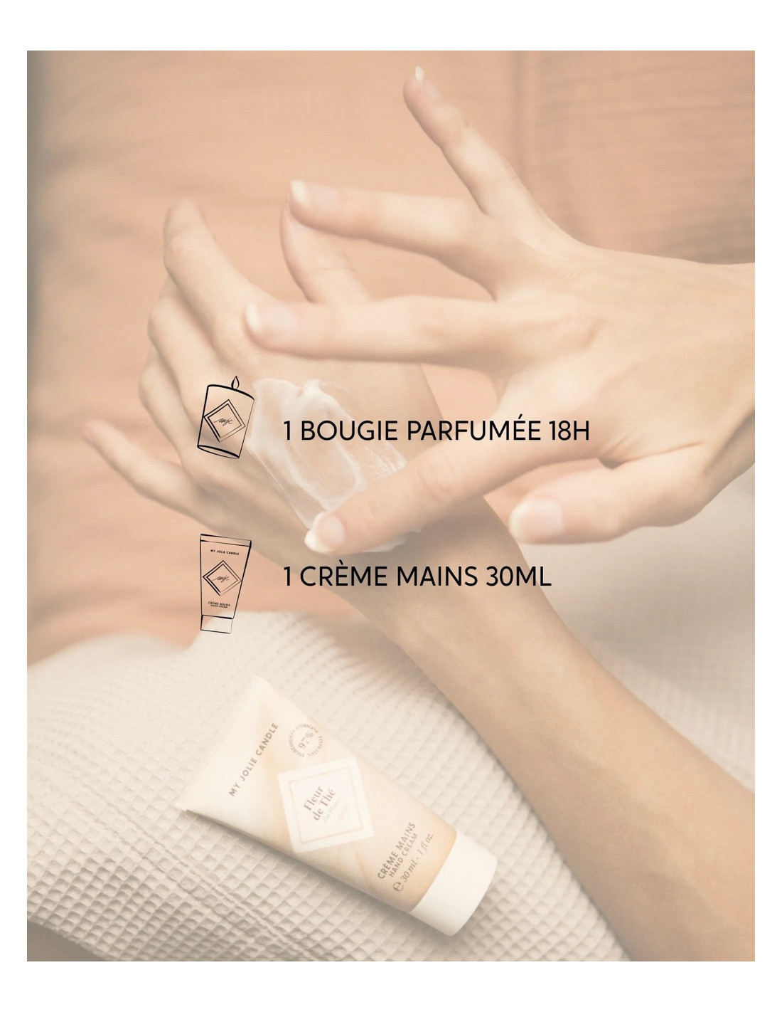 Coffret Bien être Monoï - My Jolie Candle : Succombez à ce sublime coffret composé d'une bougie sans bijou et d'une crème de mains parfumés Monoï des iles et à la vanille