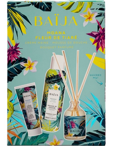 Coffret Maison et corps - Moana : Offrez notre coffret de Noël, composé d'une crème pour les mains nourrissante, d'une mousse de douche parfumée et d'un diffuseur d’ambiance. Ce trio essentiel crée une atmosphère de bien-être et de douceur, parfait pour les fêtes.