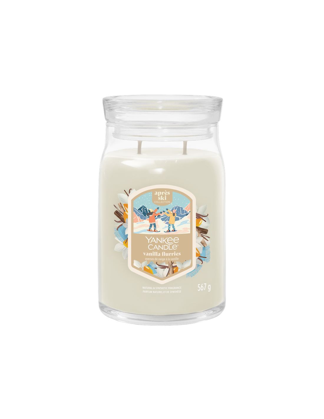 Averses de neige à la vanille - Grande bougie 2 mèches : Les flocons de neige duveteux vous invitent à un voyage sensoriel irrésistible. Des notes enchanteresses de cristaux de vanille sucrée, d'ambre doux et de vétiver raffiné se déploient dans l'air comme la caresse d'un plaid en cachemire. Créez une ambiance chaleureuse et élégante dans votre intérieur et laissez-vous envelopper par la magie de l'hiver.