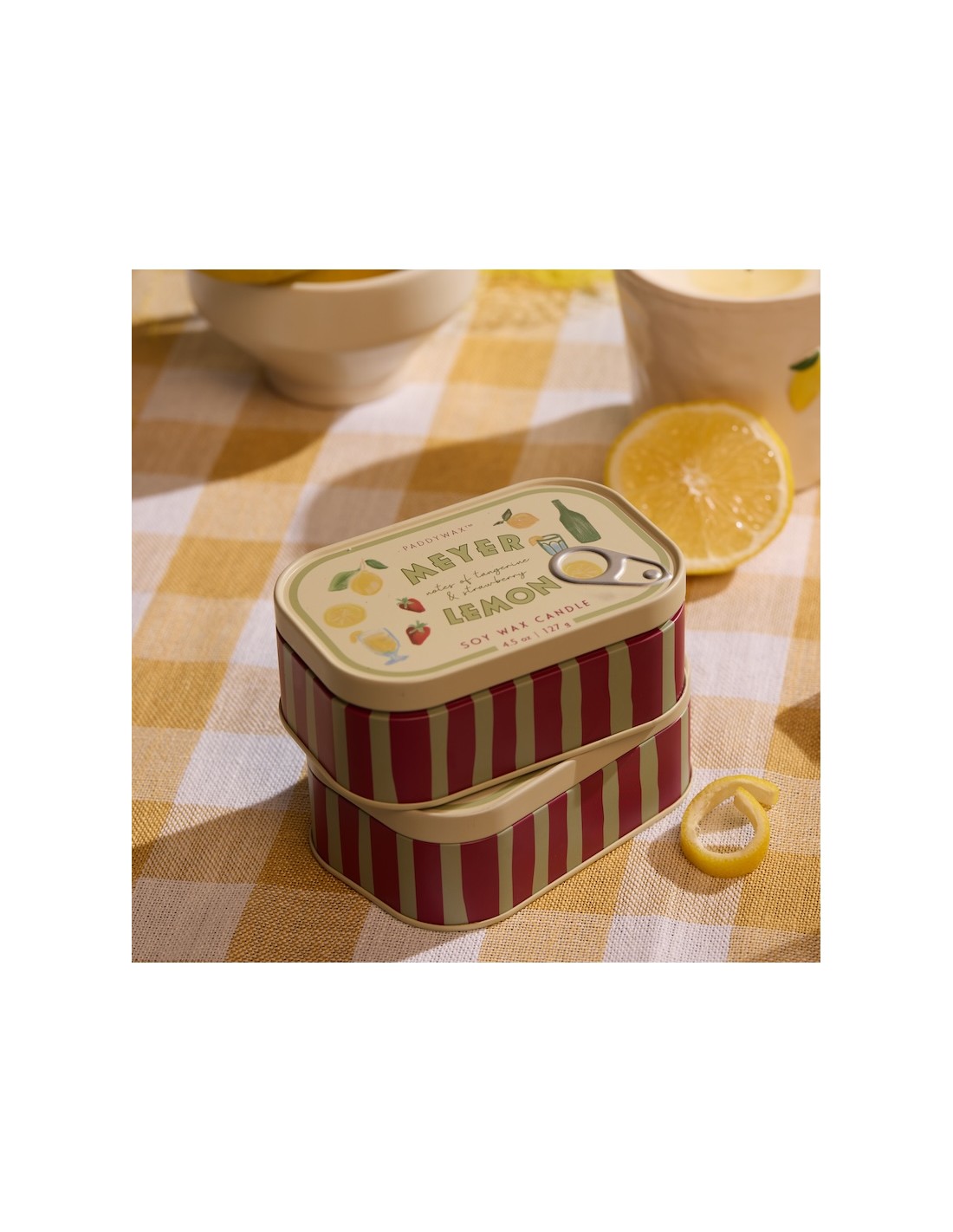 Bougie Printed In Bistro - Citron : Apportez une touche de fraîcheur pétillante à votre intérieur avec la bougie Citron de la collection Bistro. Inspirée des étals des marchés et des terrasses ensoleillées, elle diffuse un parfum vif et zesté, évoquant les plaisirs simples d’un moment gourmand. Parfaite pour illuminer vos journées avec une ambiance lumineuse et vivifiante.