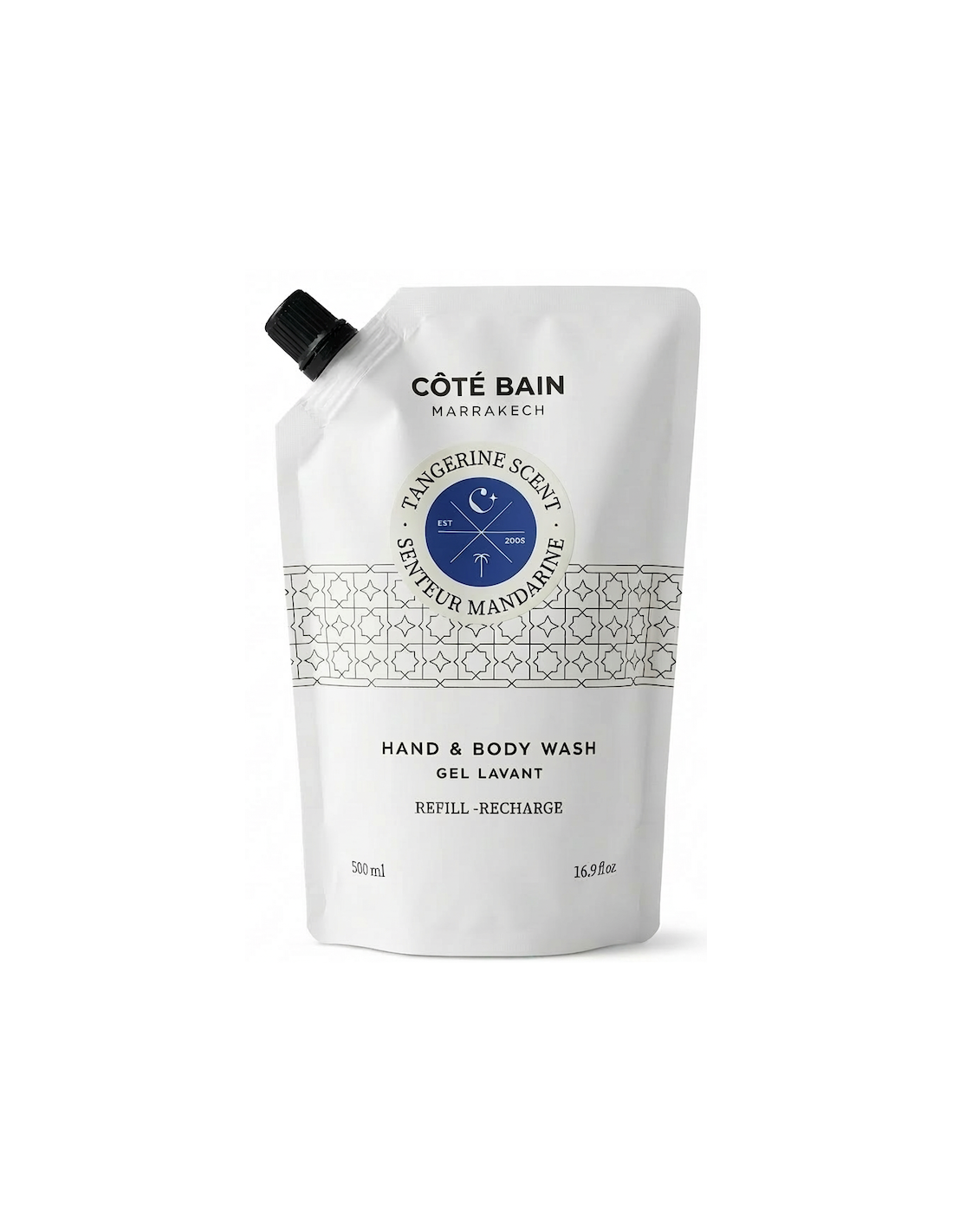Recharge gel lavant Côté Bain - Mandarine Majorelle : Recharge de gel lavant mains et corps au parfum mandarine, elle nettoie la peau en douceur tout en diffusant une fragrance fraîche, fruitée et lumineuse au quotidien.