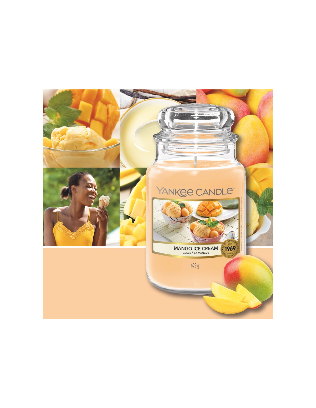 Glace à la mangue - Fondant : savourez une friandise rafraichissante, des parfums de mangue juteuse et des notes crémeuse de vanille se mélangent pour créer un dessert gourmand.
