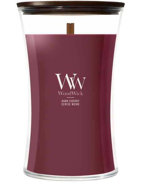 Bougie Dark Cherry - WoodWick - 610 gr : Des cerises griottes juteuses et sucrées délivrent un parfum enivrant.