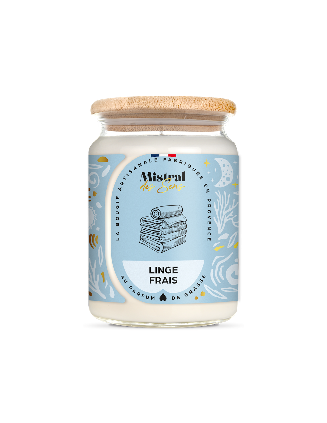 Bougie Linge frais 700ml - Mistral des Sens : La fraîcheur agréable du linge fraîchement lavé, flottant au soleil.