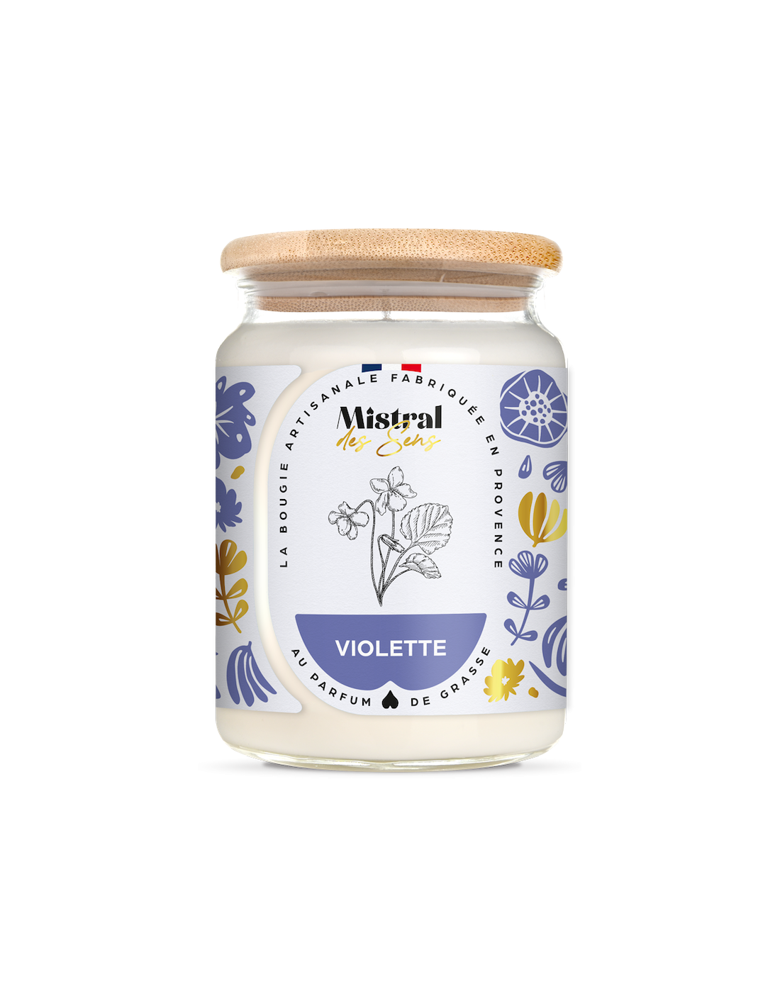 Bougie Violette 700ml - Mistral des Sens : Fragrance florale et intense, ce parfum à la violette vous charmera par sa délicatesse, sa douceur, et les souvenirs qu'il éveillera en vous.