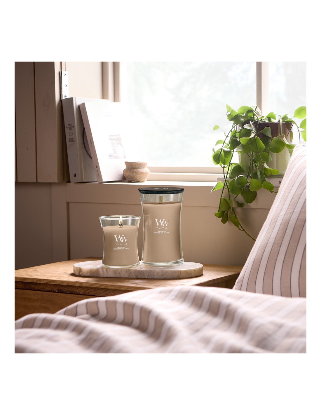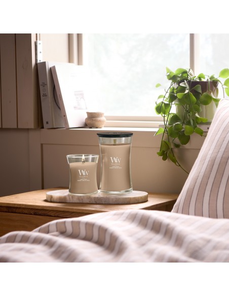Grâce à son savoir-faire et sa présence depuis 25 ans Woodwick, marque américaine, a su créer des bougies parfumées avec un concept unique : une bougie composée d'une mèche en bois qui crépite lors de la combustion.