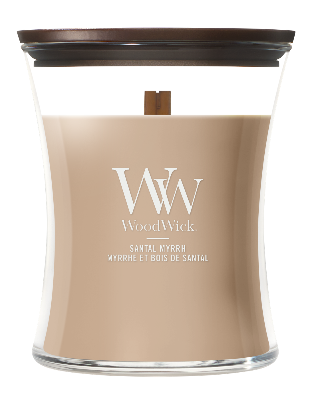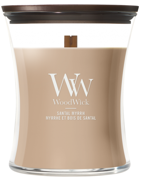 Bougie Myrrhe et bois de santal 275g - WoodWick : 🪵 Une bougie profonde et chaleureuse pour une ambiance sophistiquée et apaisante.