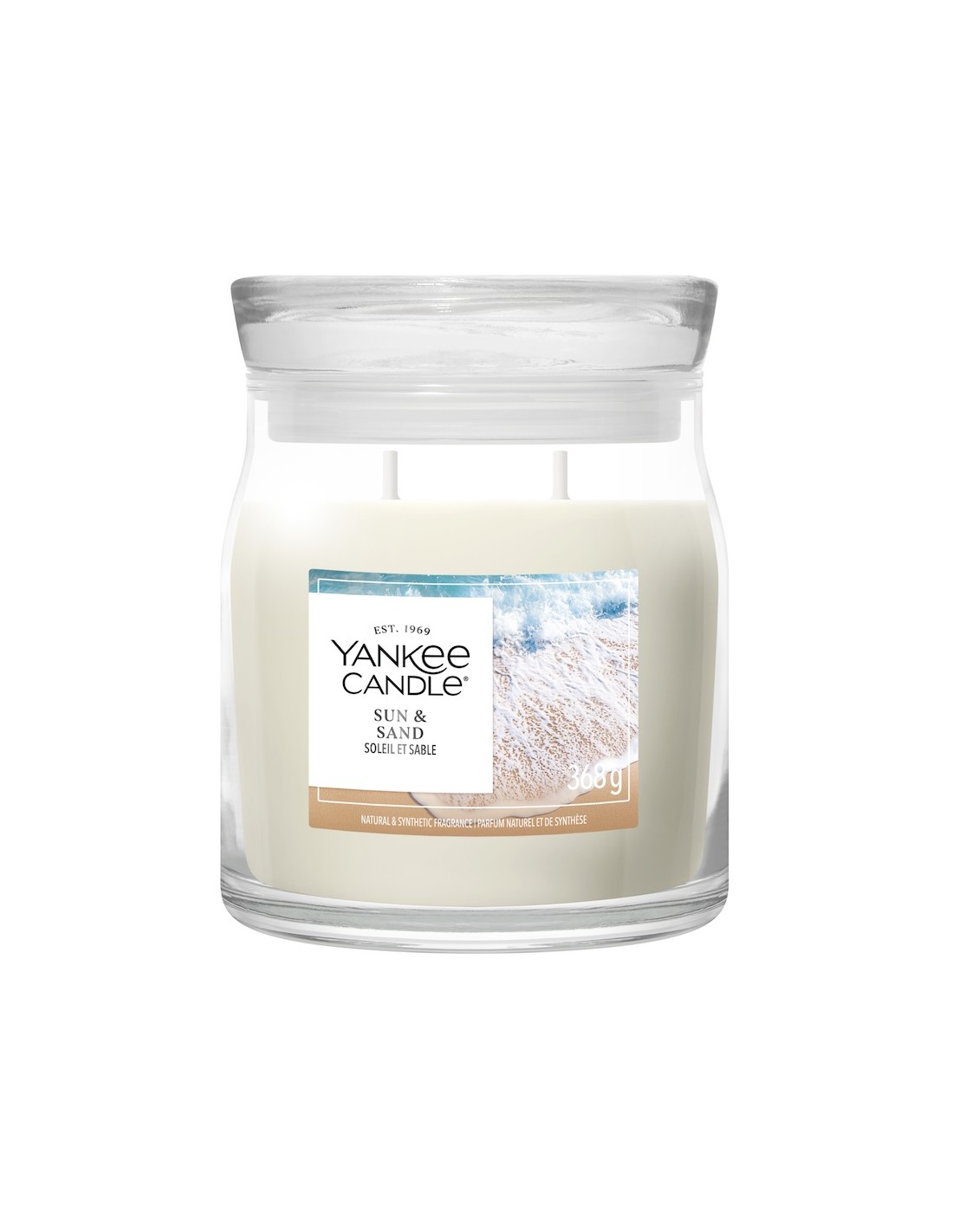 ☀️ La bougie Soleil & Sable en format 368 g diffuse une fragrance délicate et lumineuse, parfaite pour instaurer une atmosphère chaleureuse.