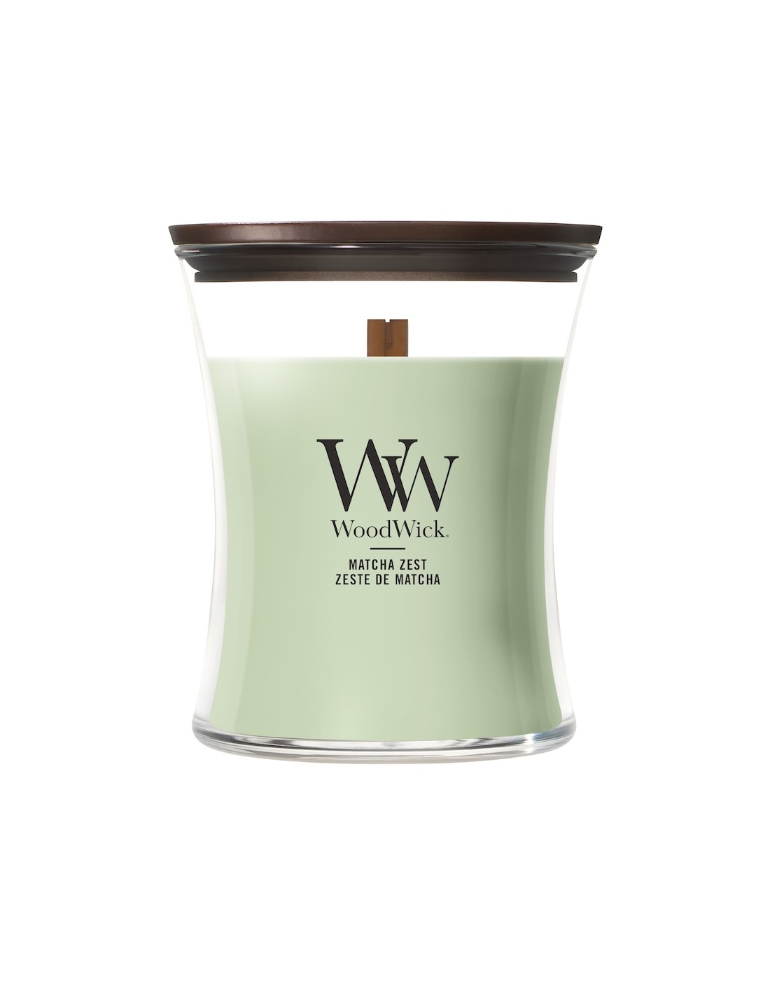 Bougie WoodWick Zeste de matcha - 275gr : 🍵 Une bougie fraîche et élégante qui invite à la détente et à la sérénité.