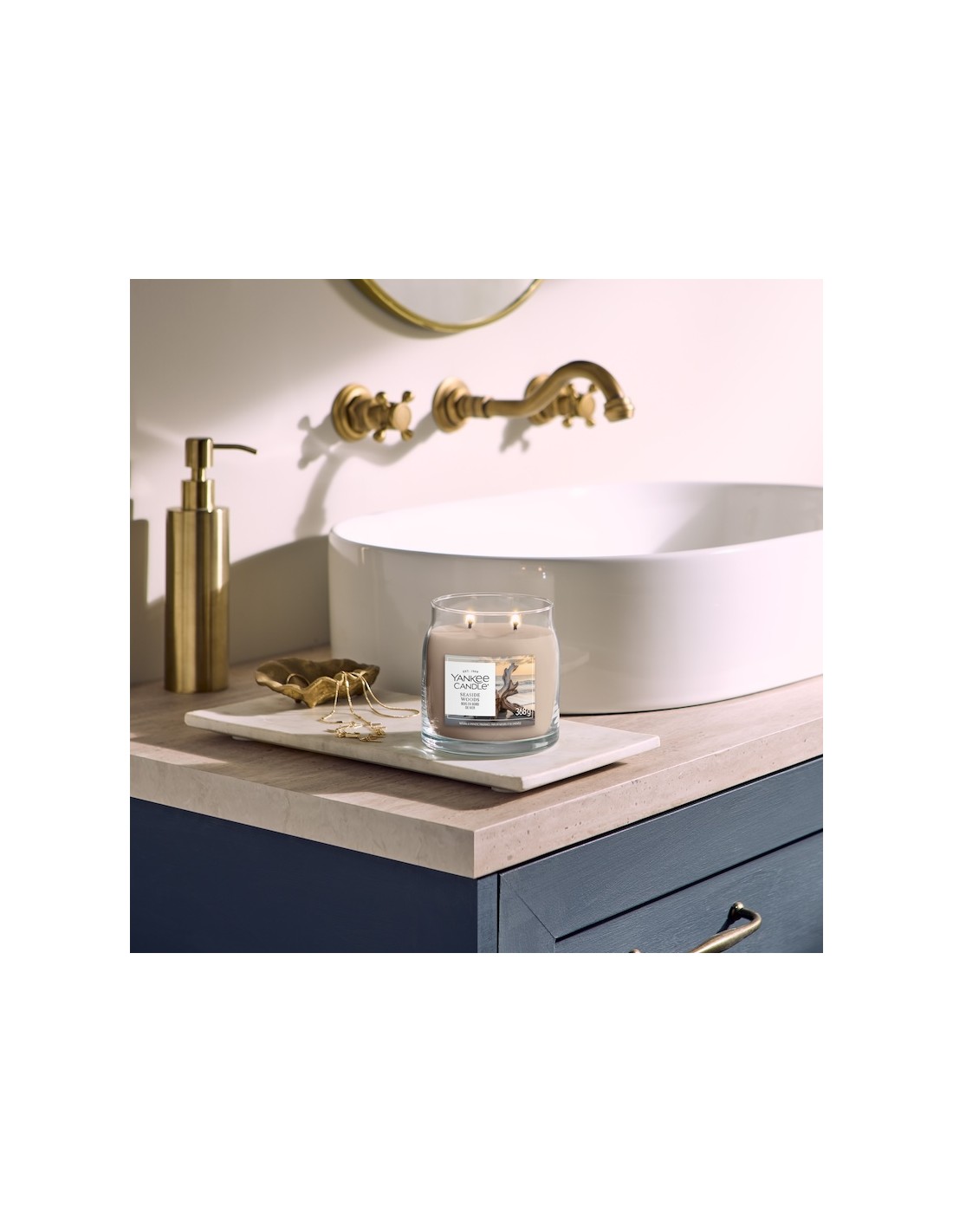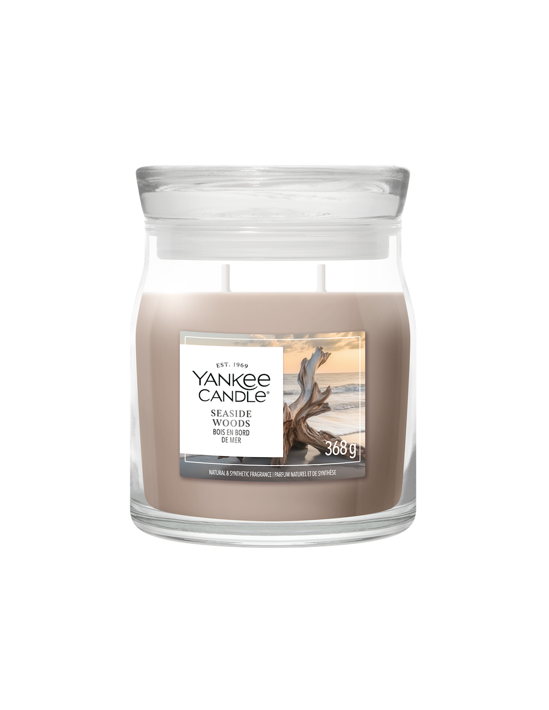 Bois en bord de mer - Moyenne bougie : Une parenthèse marine, fraîche et apaisante. Bois en Bord de Mer en format 368 g diffuse une fragrance florale et boisée, inspirée des paysages côtiers et de l’air iodé.