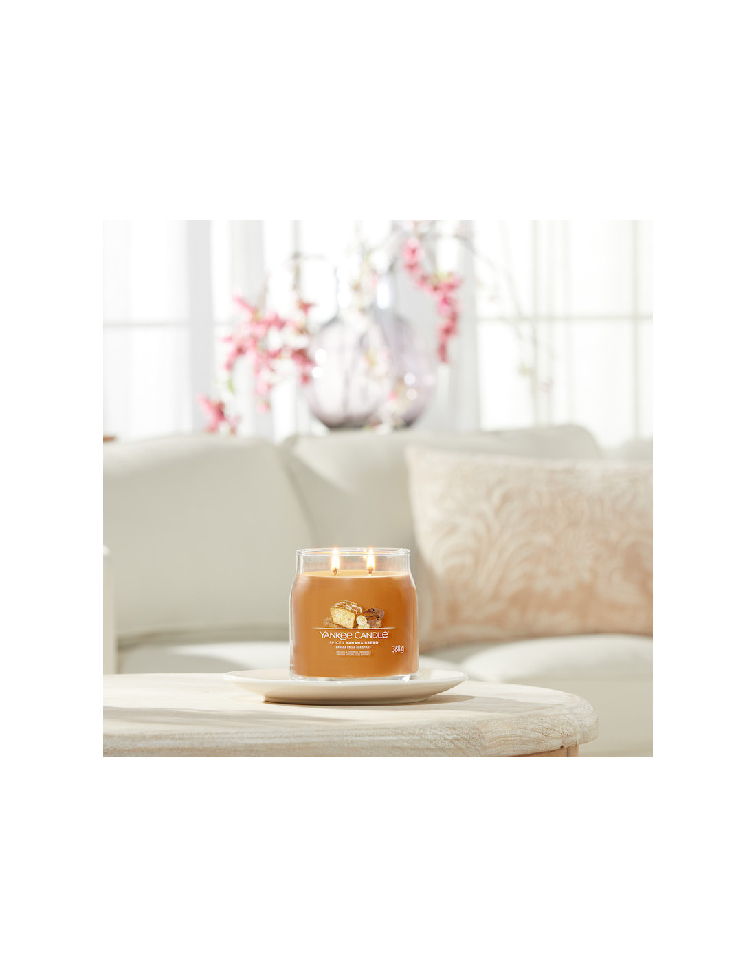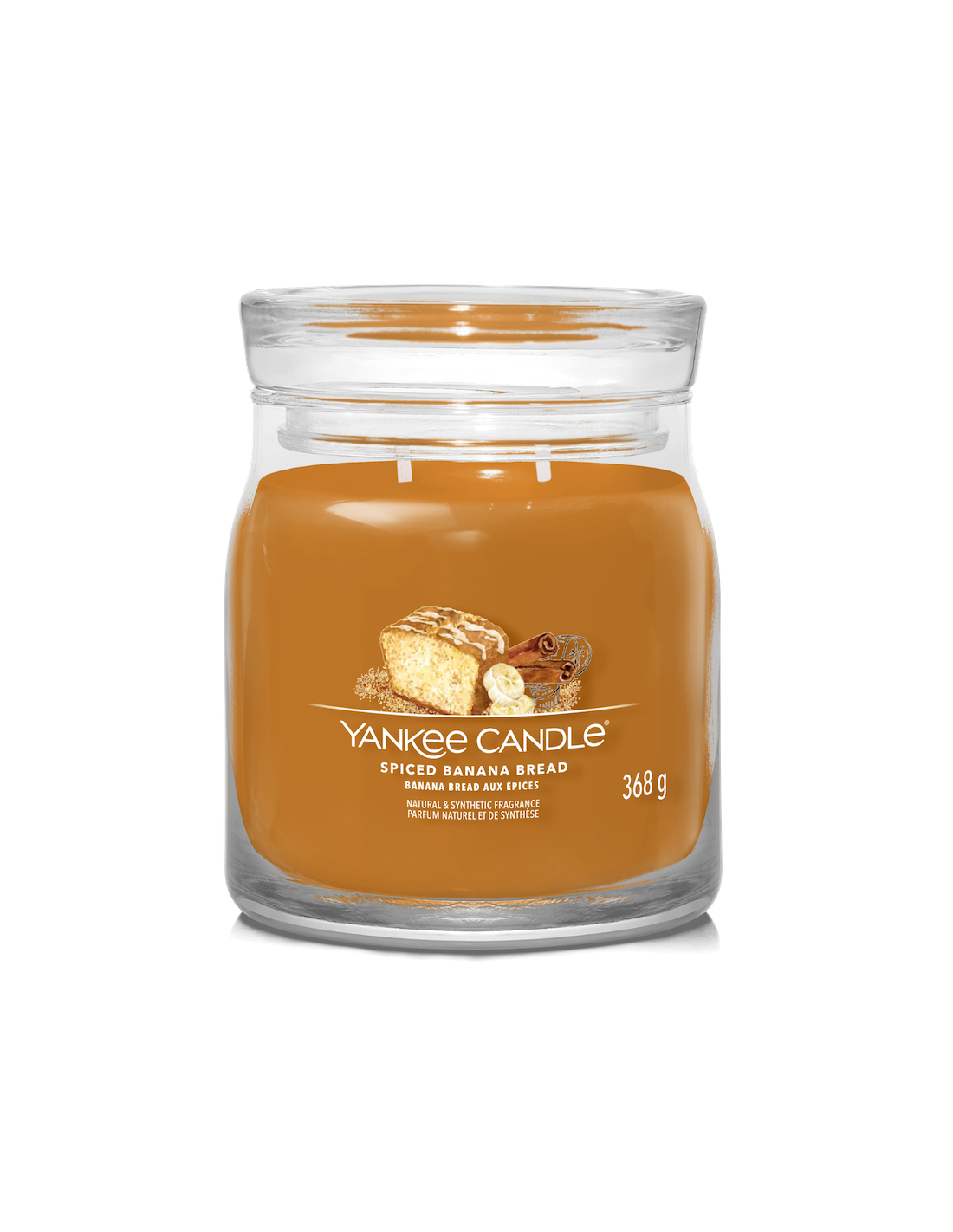 Banana bread aux épices - Moyenne bougie 2 mèches : Un parfum gourmand de gâteau à la banane et aux épices sortant du four.
