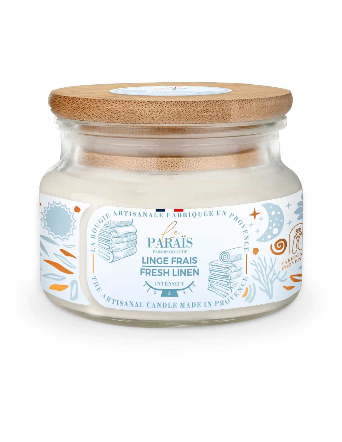 BougieLinge frais - Le Paraïs : La fraîcheur agréable du linge fraîchement lavé, flottant au soleil.
