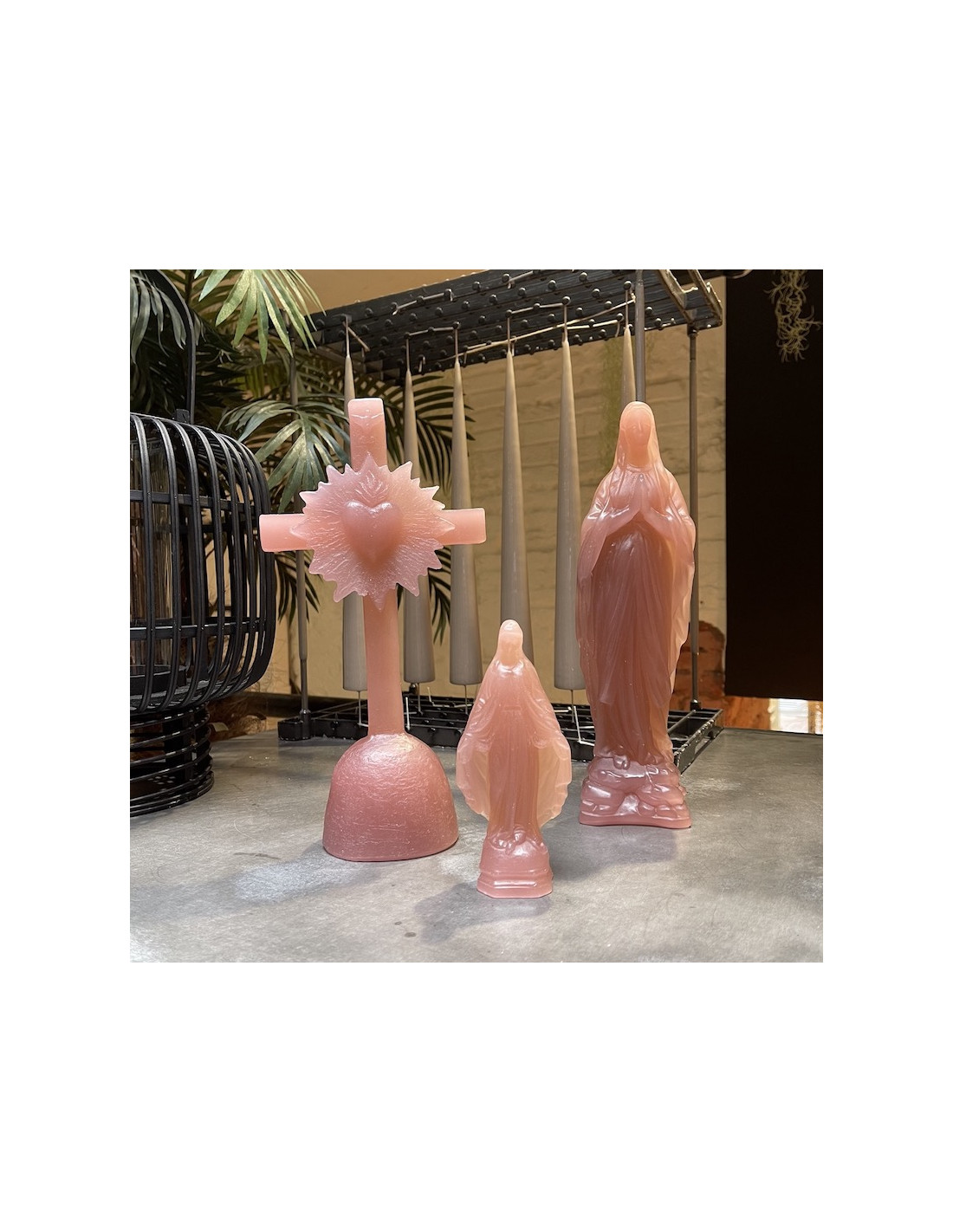 Vierge Notre Dame de couleur dragée 30 cm fabriquée artisanalement en France par la Ciergerie des Premontrés, dernière ciergerie manuelle de France et entreprise.