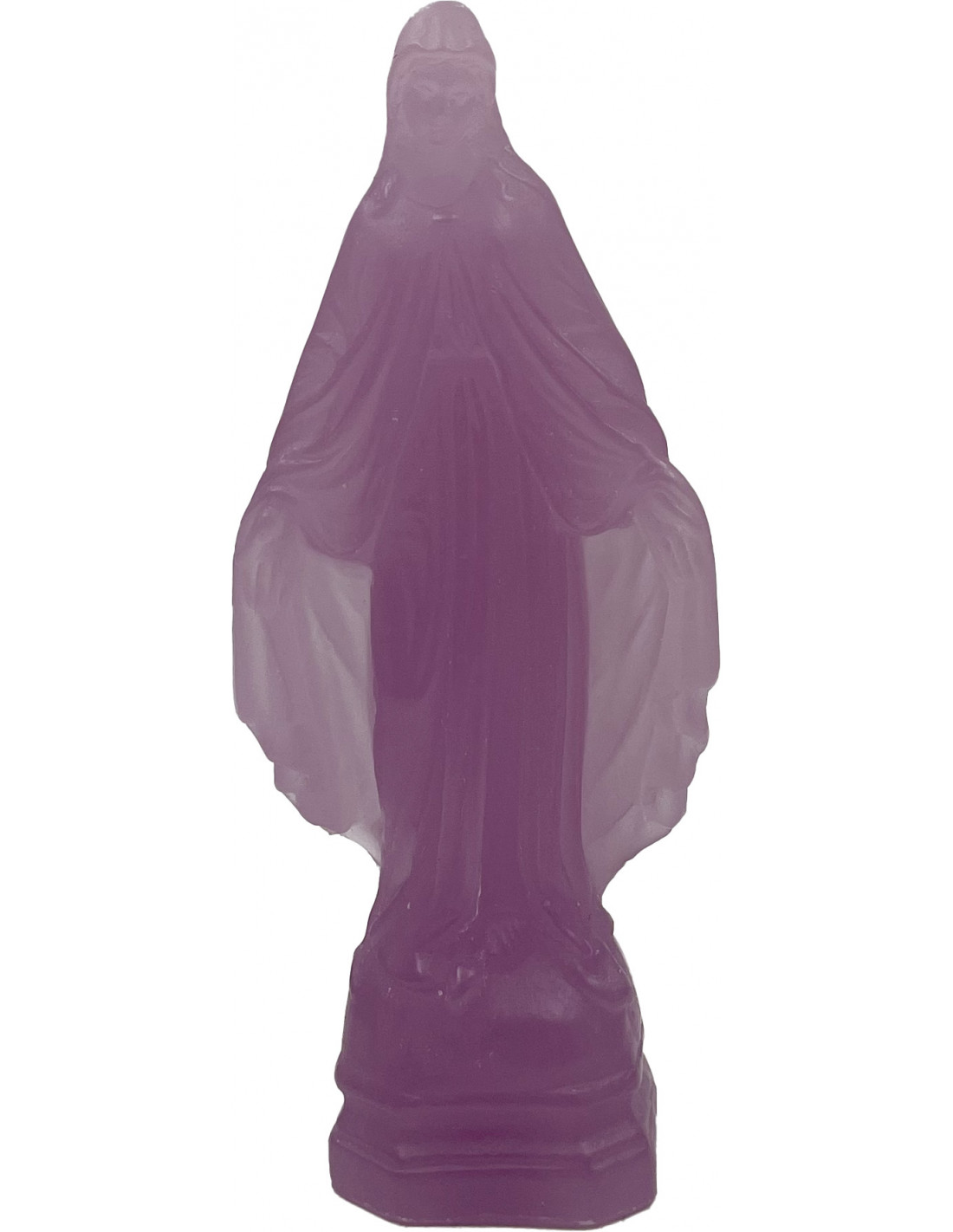 Vierge Miraculeuse de couleur parme 15 cm fabriquée artisanalement en France par la Ciergerie des Premontrés, dernière ciergerie manuelle de France et entreprise.