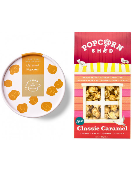 Duo bougie popcorn - Classic : Le duo incontournable ; associé le parfum du caramel à votre intérieur et à votre palais grâce à ce paquet de pop-corn et cette bougie parfumée.