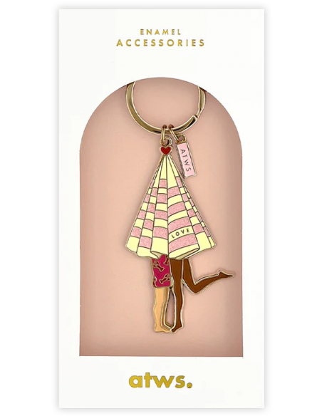 Craquez pour ce porte-clés illustré "Beach Lovers", une création originale de la marque française ALL THE WAYS TO SAY. Fabriqué en éco-acrylique recyclé, il met en scène un couple profitant d’un moment paisible sur la plage, sous un parasol coloré.