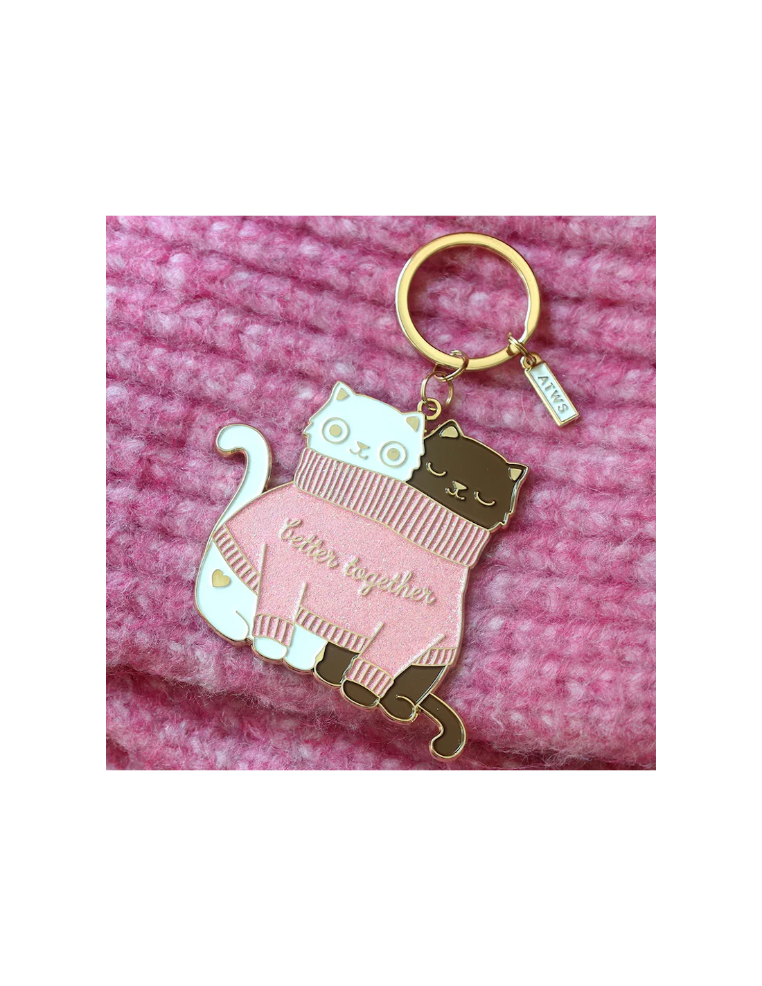 Porte-clés 2 Cats in a Sweater – All The Ways To Say : Pour les amoureux des chats et des ambiances cocooning, le porte-clés 2 Cats in a Sweater est un véritable coup de cœur. Deux adorables chats blottis dans leurs pulls douillets apportent une touche de tendresse et de chaleur à vos clés ou à votre sac. 🐱🧶