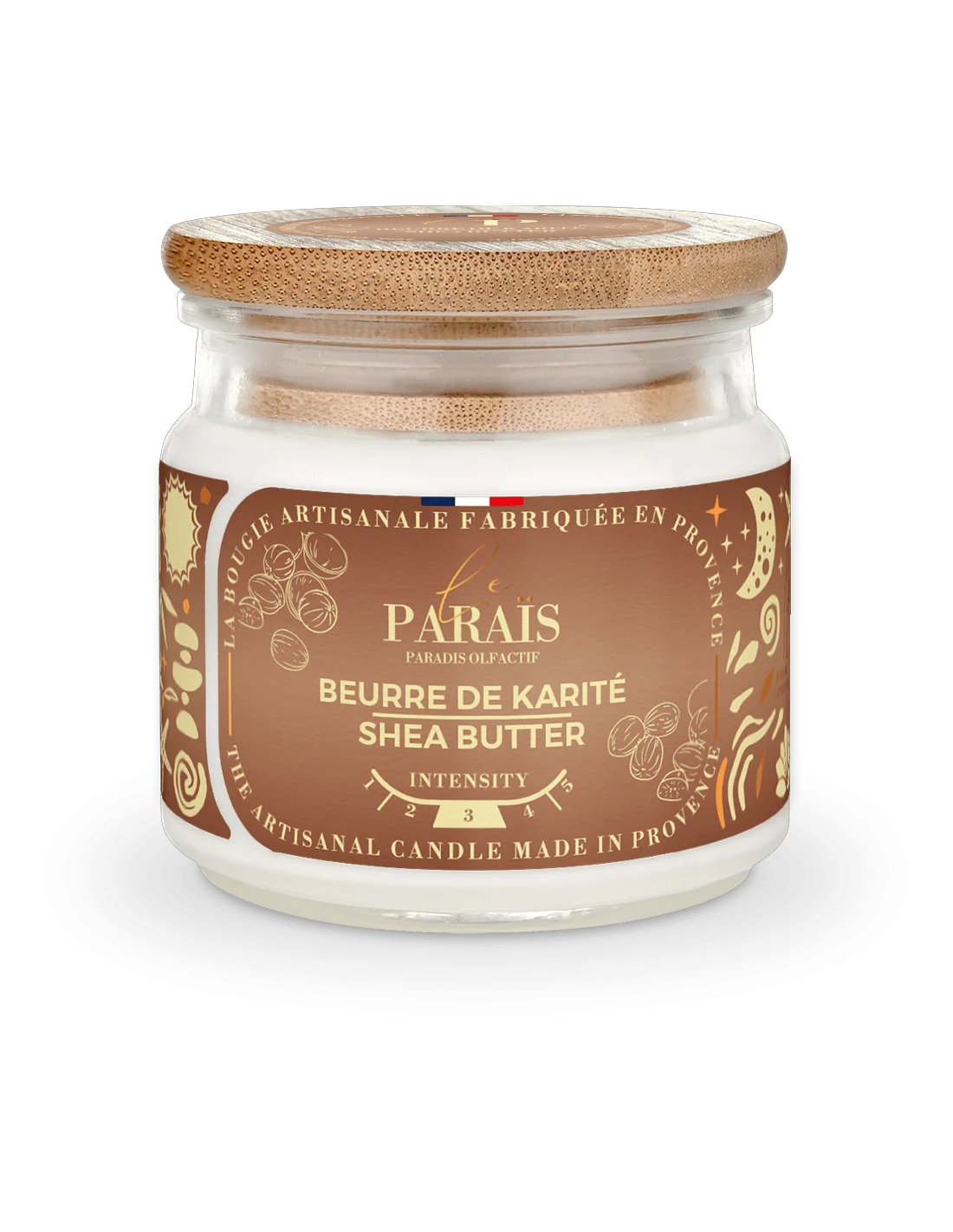 Bougie Beurre de karité - Le Paraïs : Une bougie parfumée douce et enveloppante autour du beurre de karité.