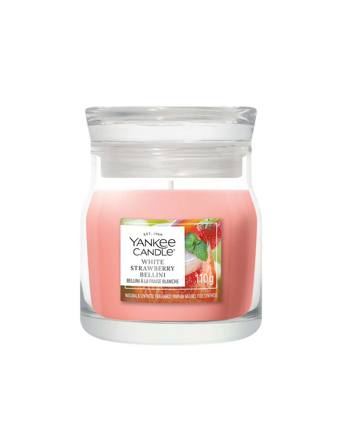 Bellini aux fraises blanches - Petite Jarre : Un concentré de fraîcheur fruitée et gourmande. Bellini aux Fraises Blanches en format 110 g diffuse une senteur pétillante et sucrée, parfaite pour apporter une touche estivale à votre intérieur.
