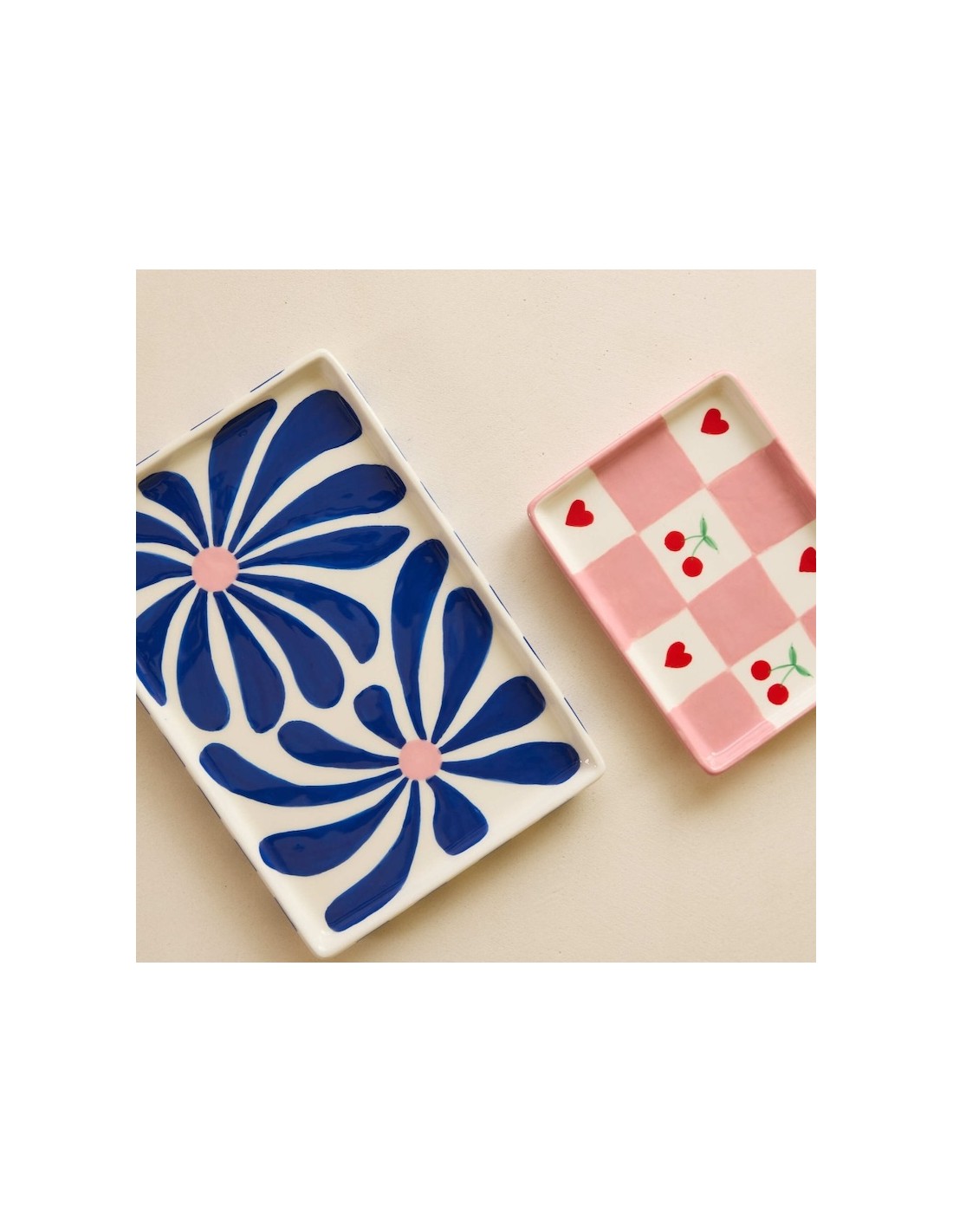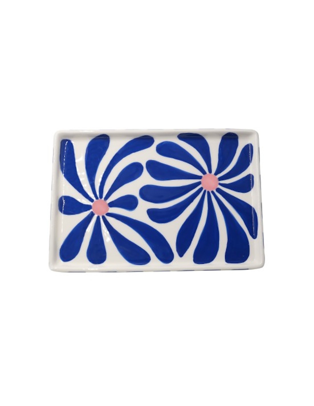 Plateau Alejandro - Fiesta Floral : un plateau bleu et jaune en céramique. Utilise-le pour y mettre vos clés ou en simple élément de décoration.