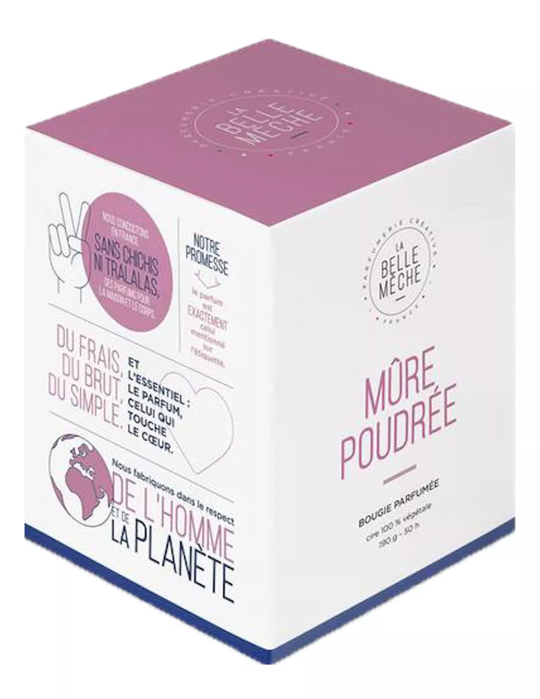 Bougie Mûre Poudrée : Le mélange subtil de la mûre gourmande avec l’arôme profond du musc.