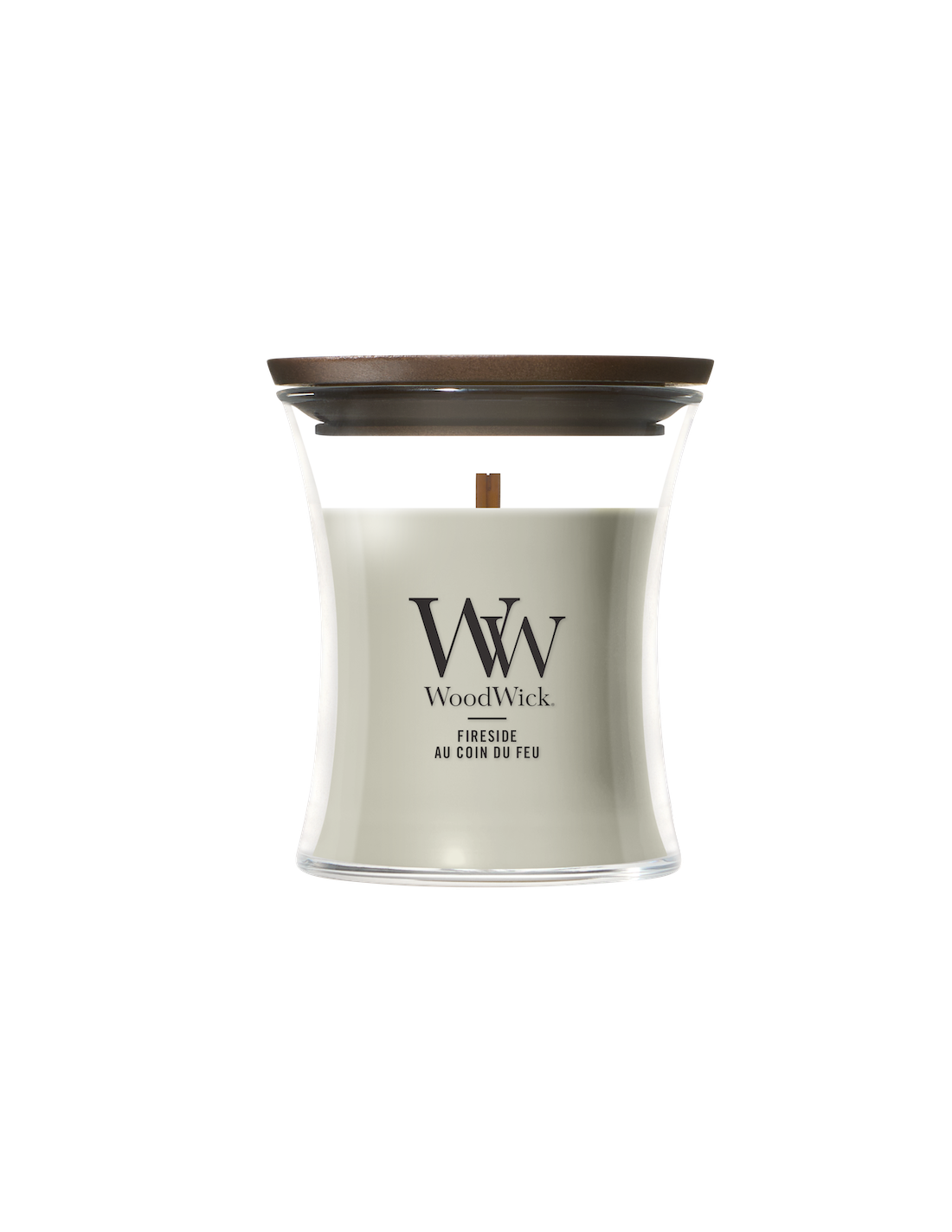 Bougie WoodWick Au coin du Feu - 85 gr : 🔥 Un petit format chaleureux qui recrée l’ambiance douce d’une soirée près de la cheminée.