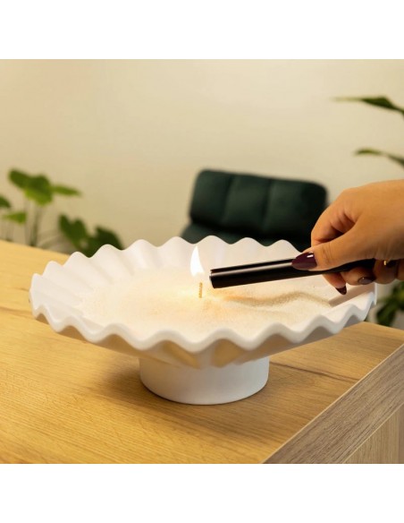 Prenez une mèche incluse et insérez-la au centre de la cire. Elle doit dépasser d’environ 1 cm. - Allumez et profitez